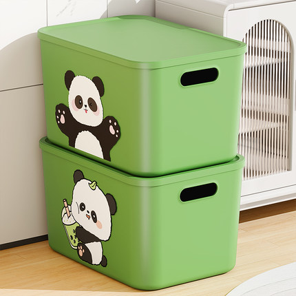 桌面收纳盒家用杂物零食化妆品整理盒卡通长方形带盖储物盒收纳篮