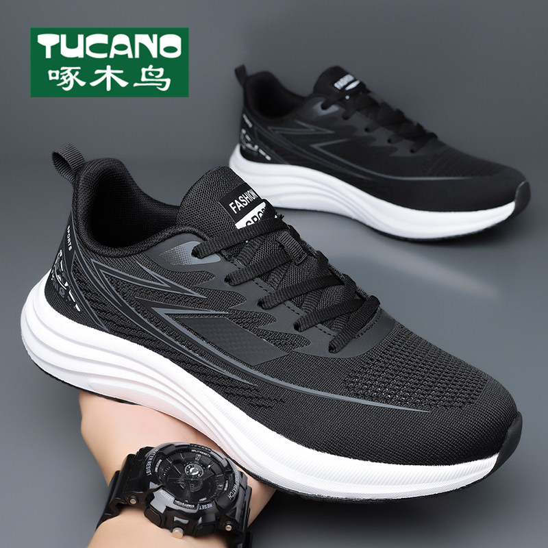 啄木鸟男鞋2025新款网面透气运动休闲鞋男士百搭软底防滑跑步鞋男