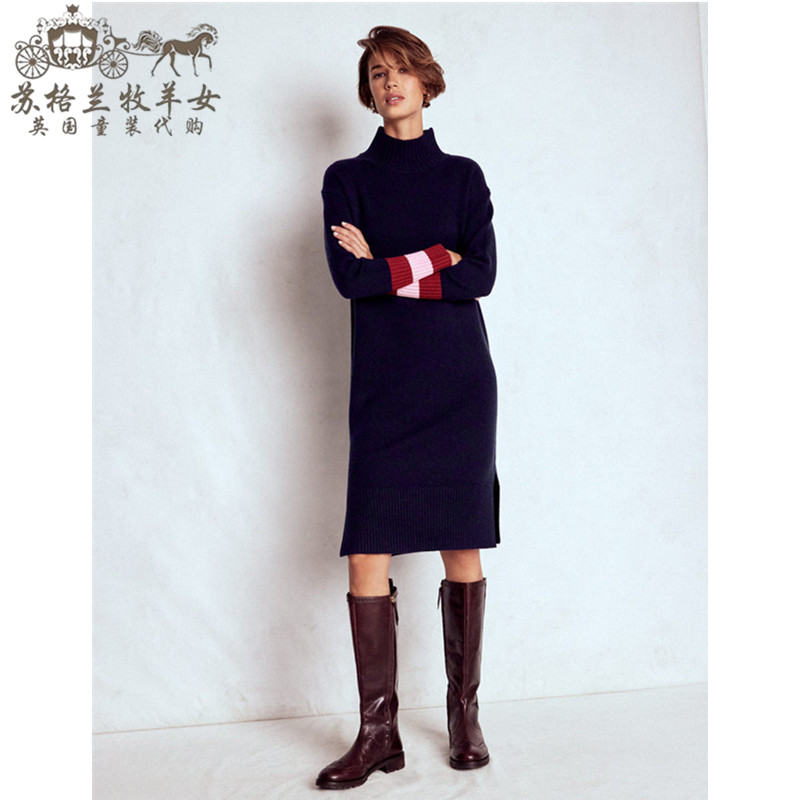 英国Boden代购 女装25秋冬新款 英伦蓝色长袖针织毛衣裙连衣裙子
