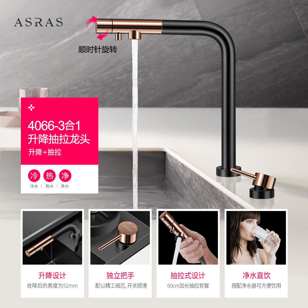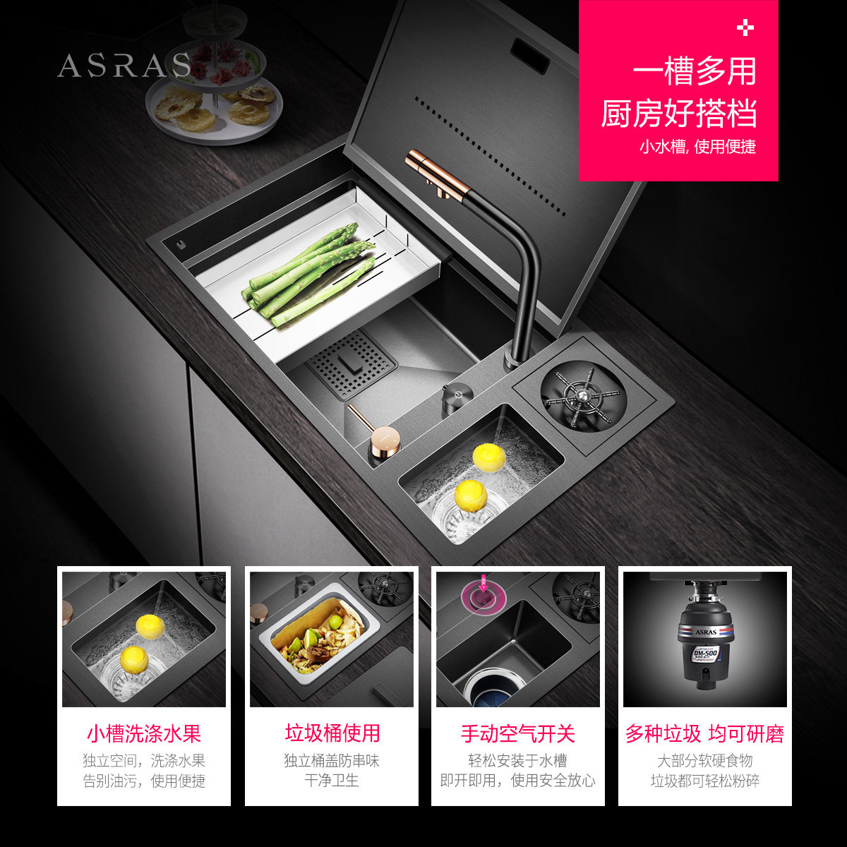 阿萨斯纳米大单槽隐藏式中岛台