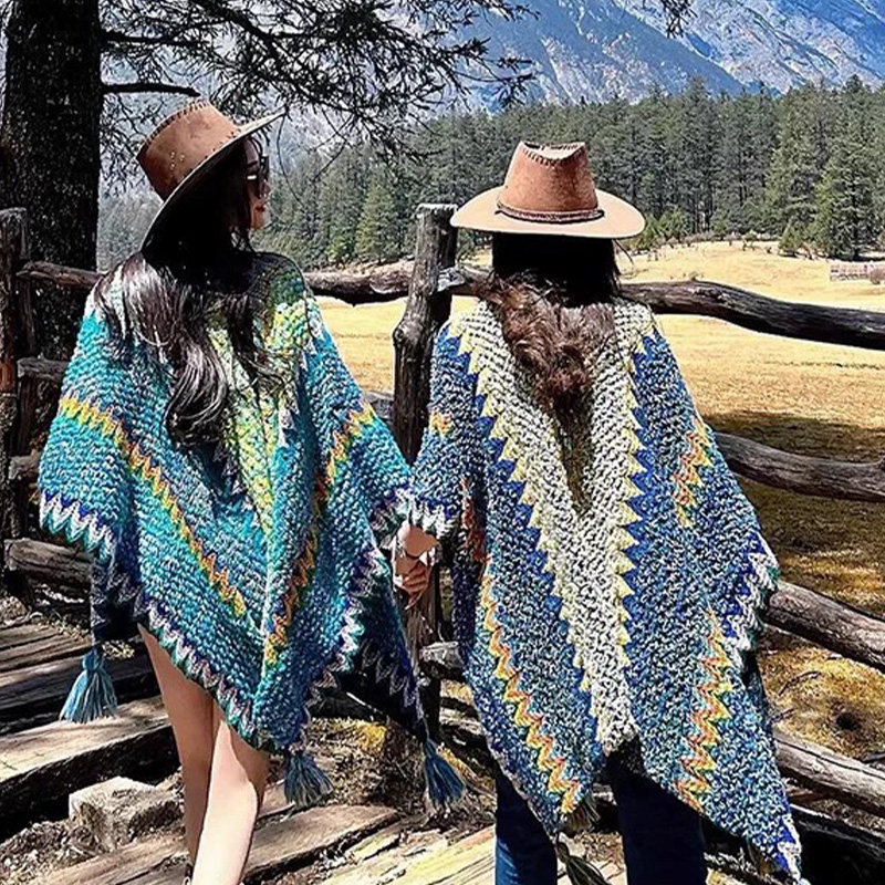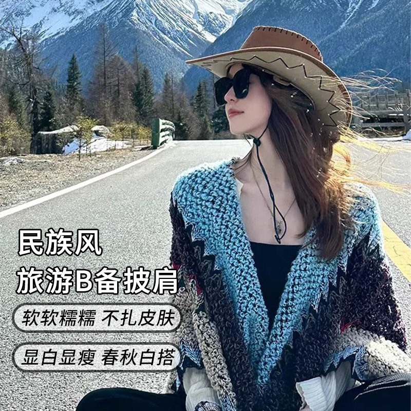 民族风针织披肩外搭女2025新款夏季复古云南新疆草原披风外套斗篷