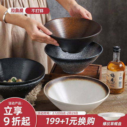 川岛屋日式拉面碗家用复古斗笠碗高级感陶瓷大碗汤碗泡面碗面条碗