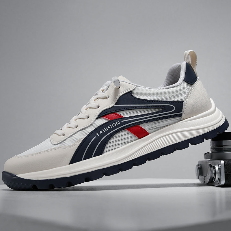 VIFIRFAR 男鞋2025夏季新款透气皮网拼接厚底软底时尚休闲运动鞋