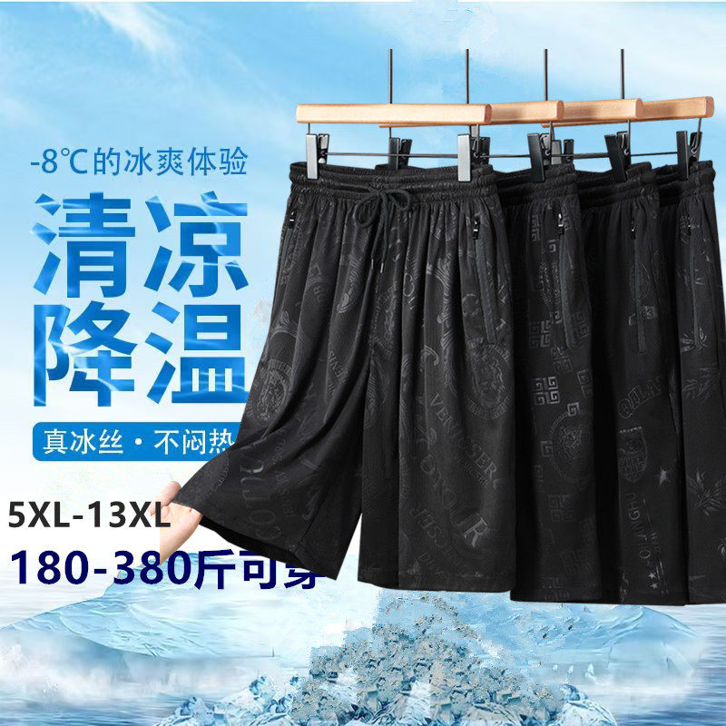 380斤夏季冰丝速干休闲运动短裤男宽松加肥加大码潮流五分大裤衩