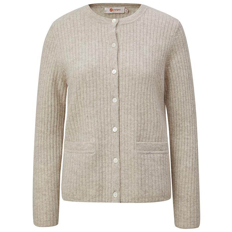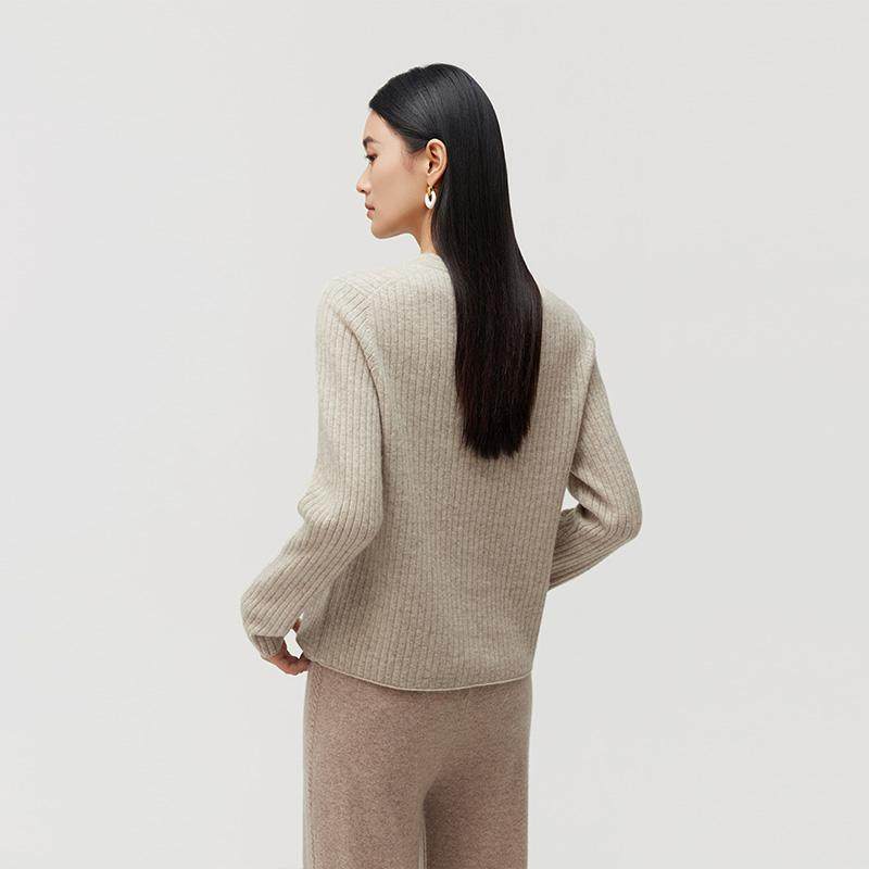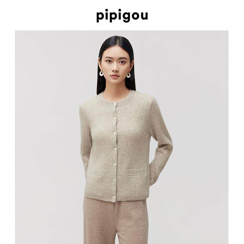皮皮狗商场同款秋冬新款无染色羊绒开衫圆领立体针织女外套