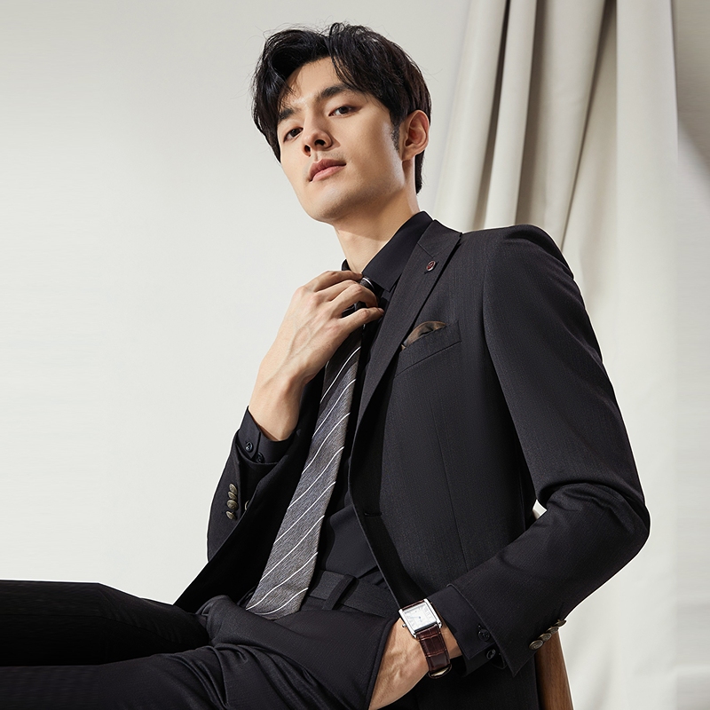 【高端系列】柒牌西装男士套装秋冬新款商务暗条纹含羊毛西服