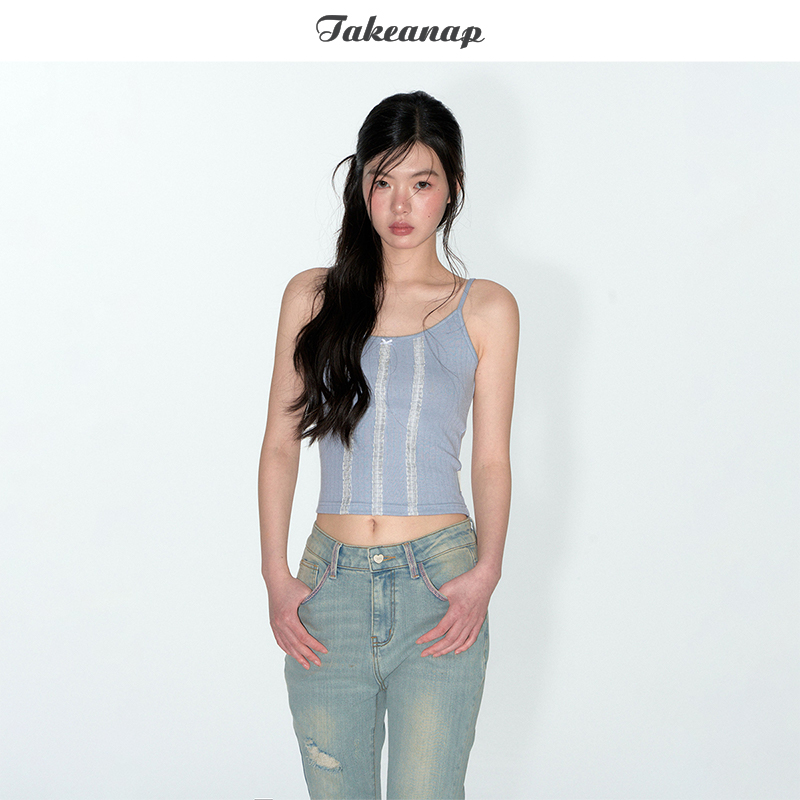 TAKEANAP午睡 原创拼接蕾丝花边吊带女夏季叠穿短款百搭外穿背心