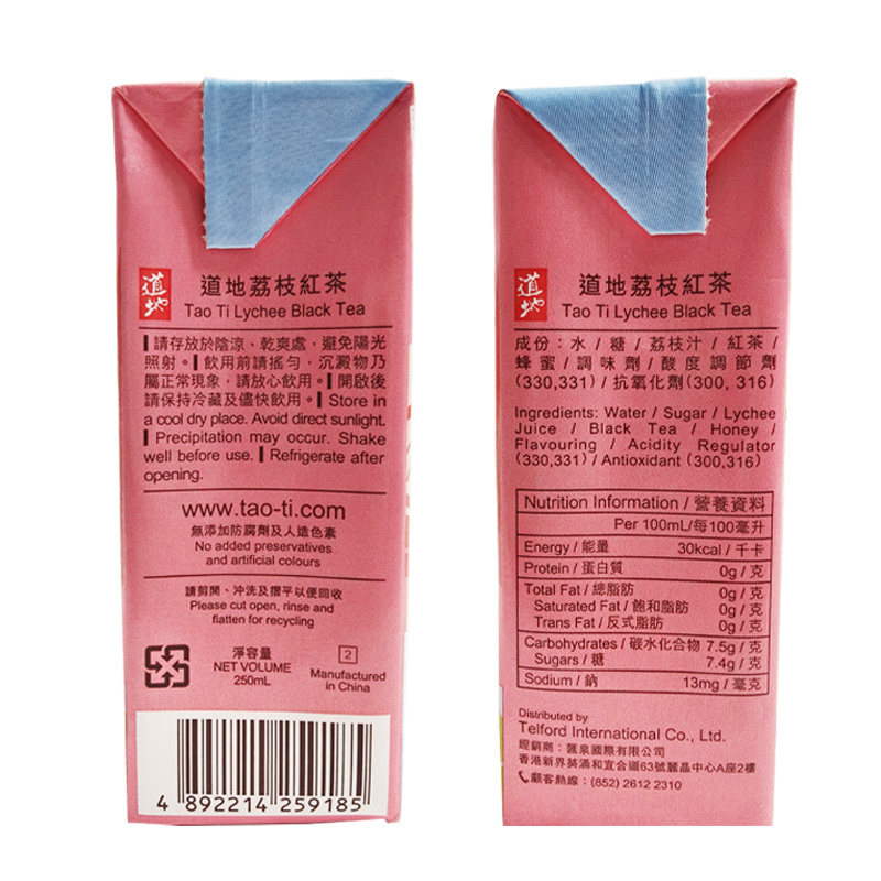 香港道地荔枝红茶250ml*6瓶