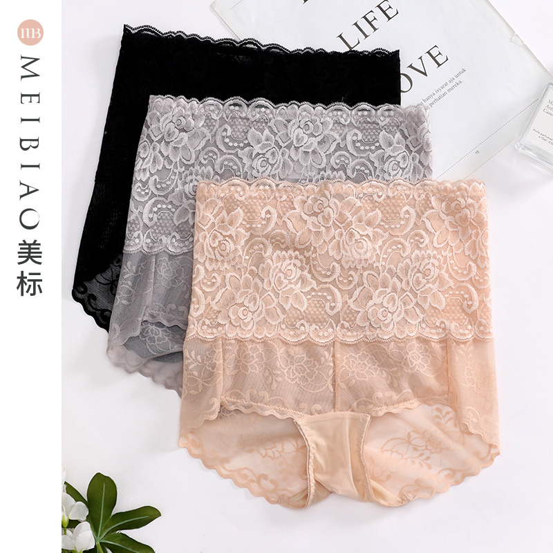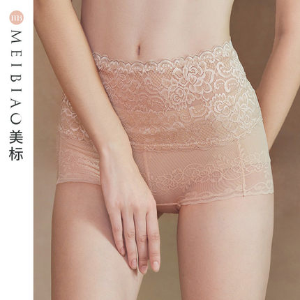 美标新款裆部丝绸真丝100%桑蚕丝内裤女士蕾丝性感高腰家居三角裤