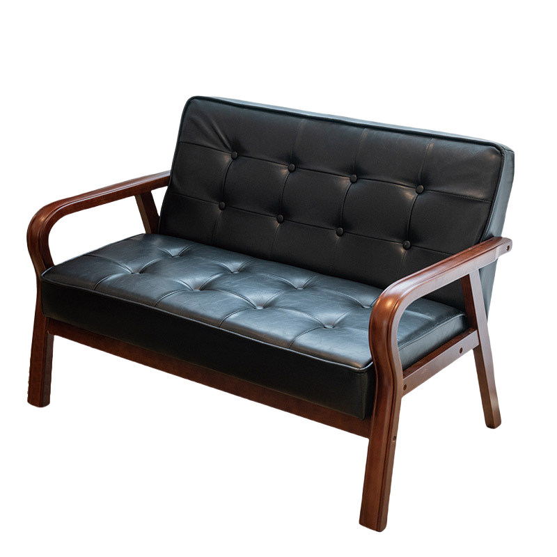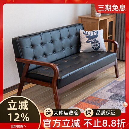 中古风皮艺沙发小户型客厅实木沙发椅黑色复古咖啡厅茶楼卡座沙发