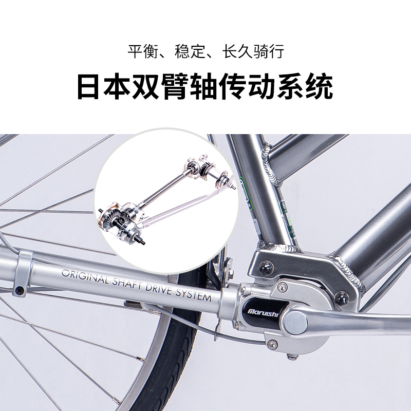 日本进口丸石无链条轴传动自行车男士上班骑代步内变速轻便单车
