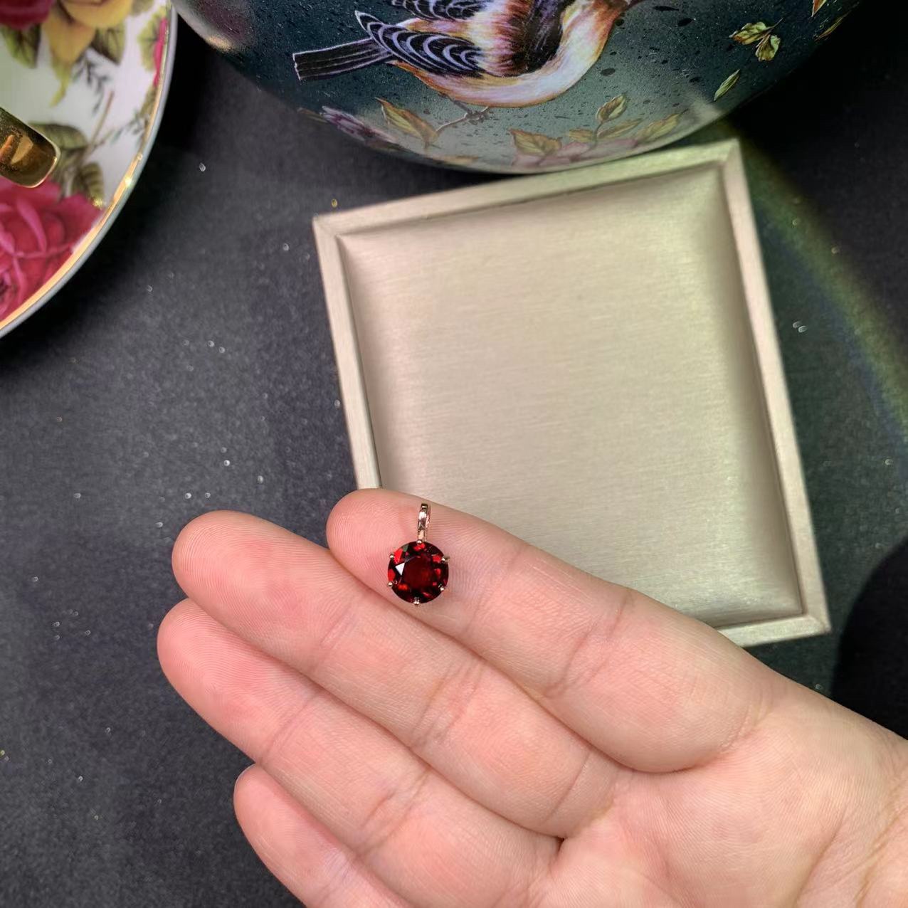 特惠925银镀玫瑰金莫桑比克石榴石吊坠8*8MM2克拉 六爪吊坠