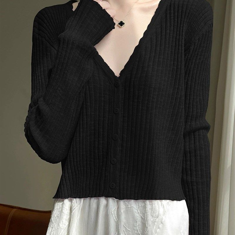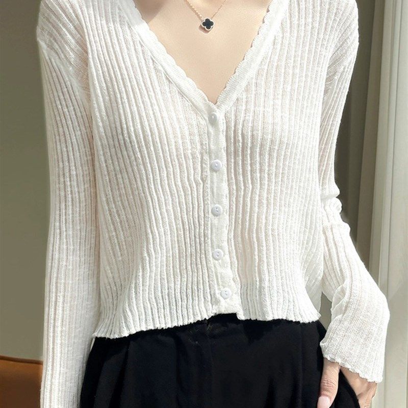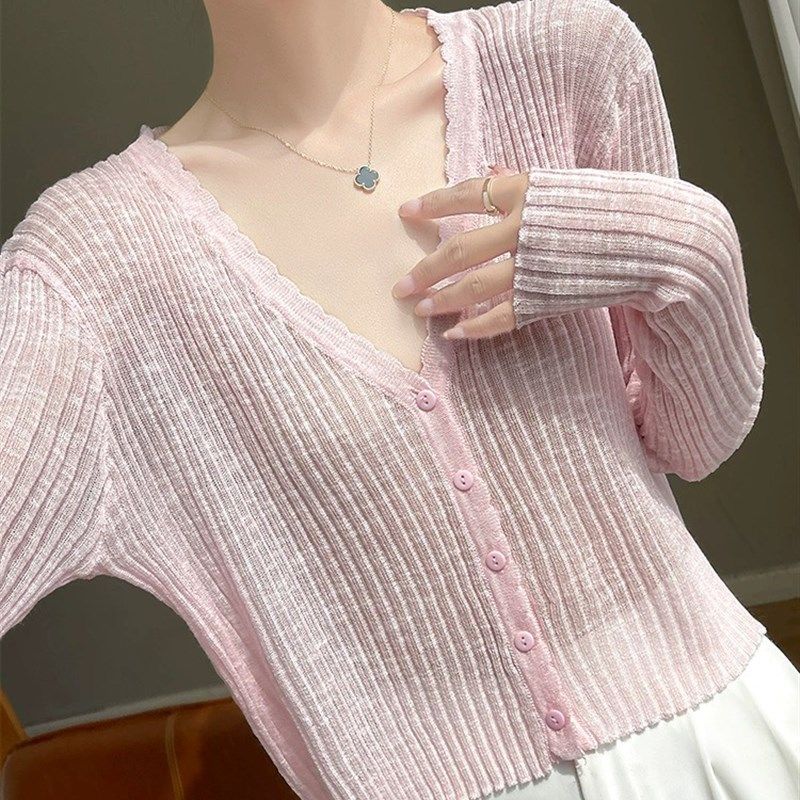 针织防晒开衫女薄款长袖夏季外搭短款空调衫小披肩上衣小个子罩衫