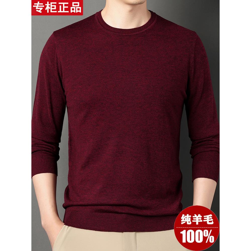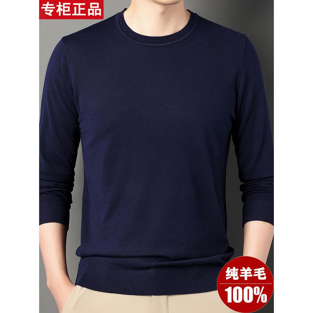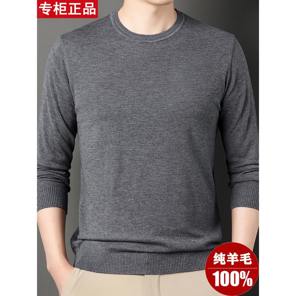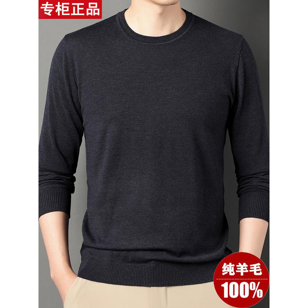 鄂尔多斯市100%纯羊毛衫男士薄款圆领春秋季针织羊绒打底纯色毛衣
