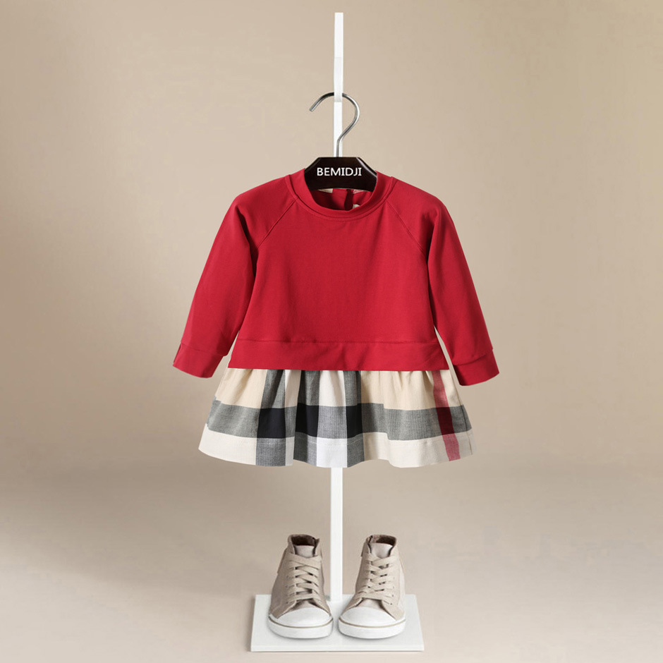 2025女童纯棉连衣裙宝宝长袖秋装裙小童圓领洋气公主裙格子英伦风