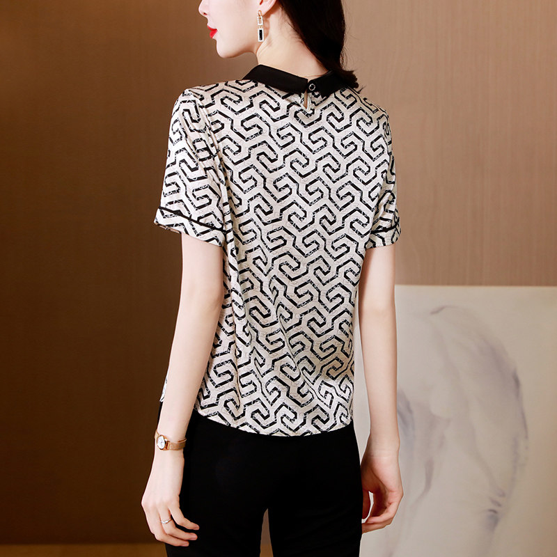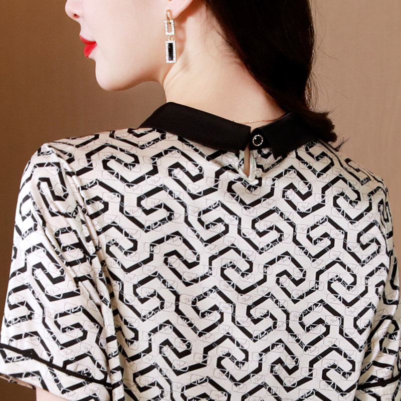 杭州真丝T恤女中老年妈妈印花