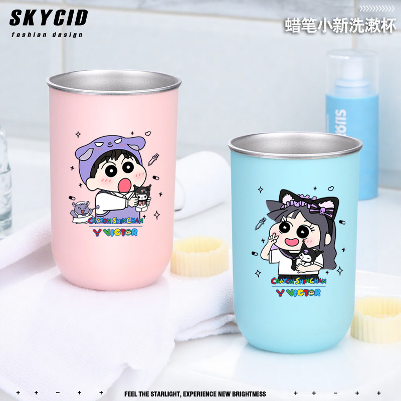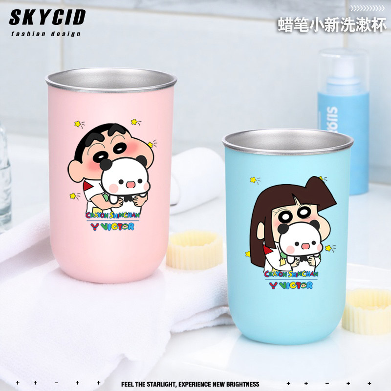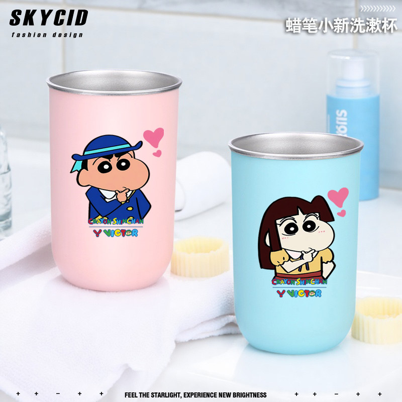 蜡笔小新动漫周边小新小爱卡通可爱家庭情侣不锈钢洗漱杯刷牙杯dt