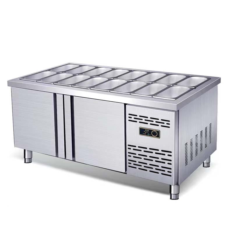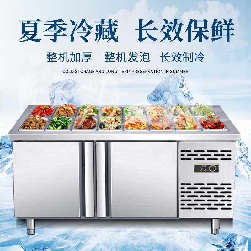 商用不锈钢开槽沙台拉冷藏沙拉披萨工作台柜水果907展示柜小捞菜