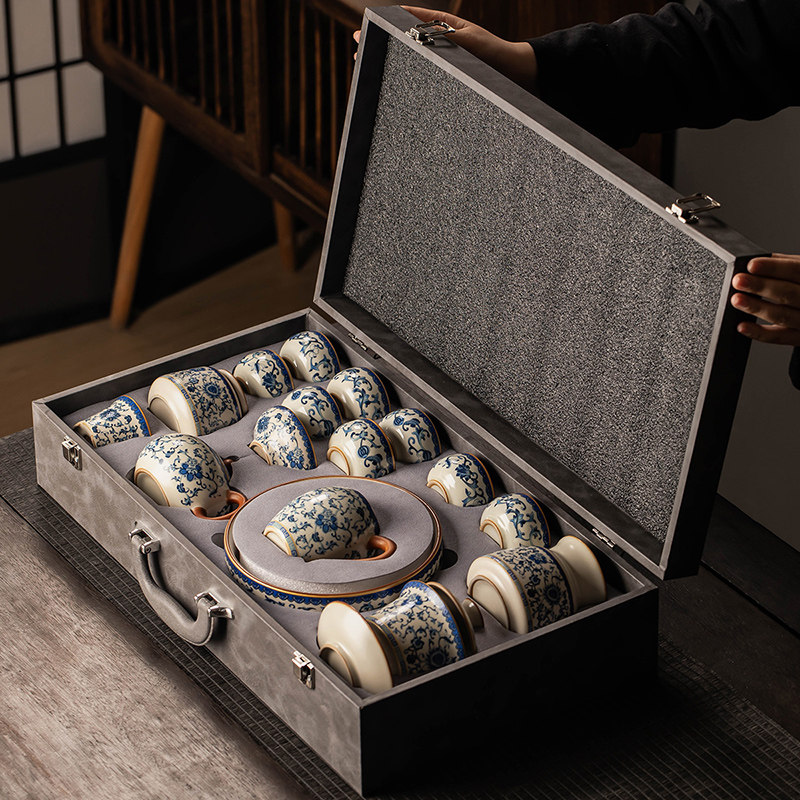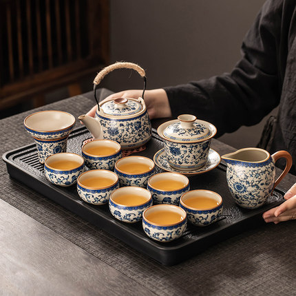 青花黄汝窑茶具套装家用轻奢高档陶瓷泡茶壶功夫茶杯整套2026新款