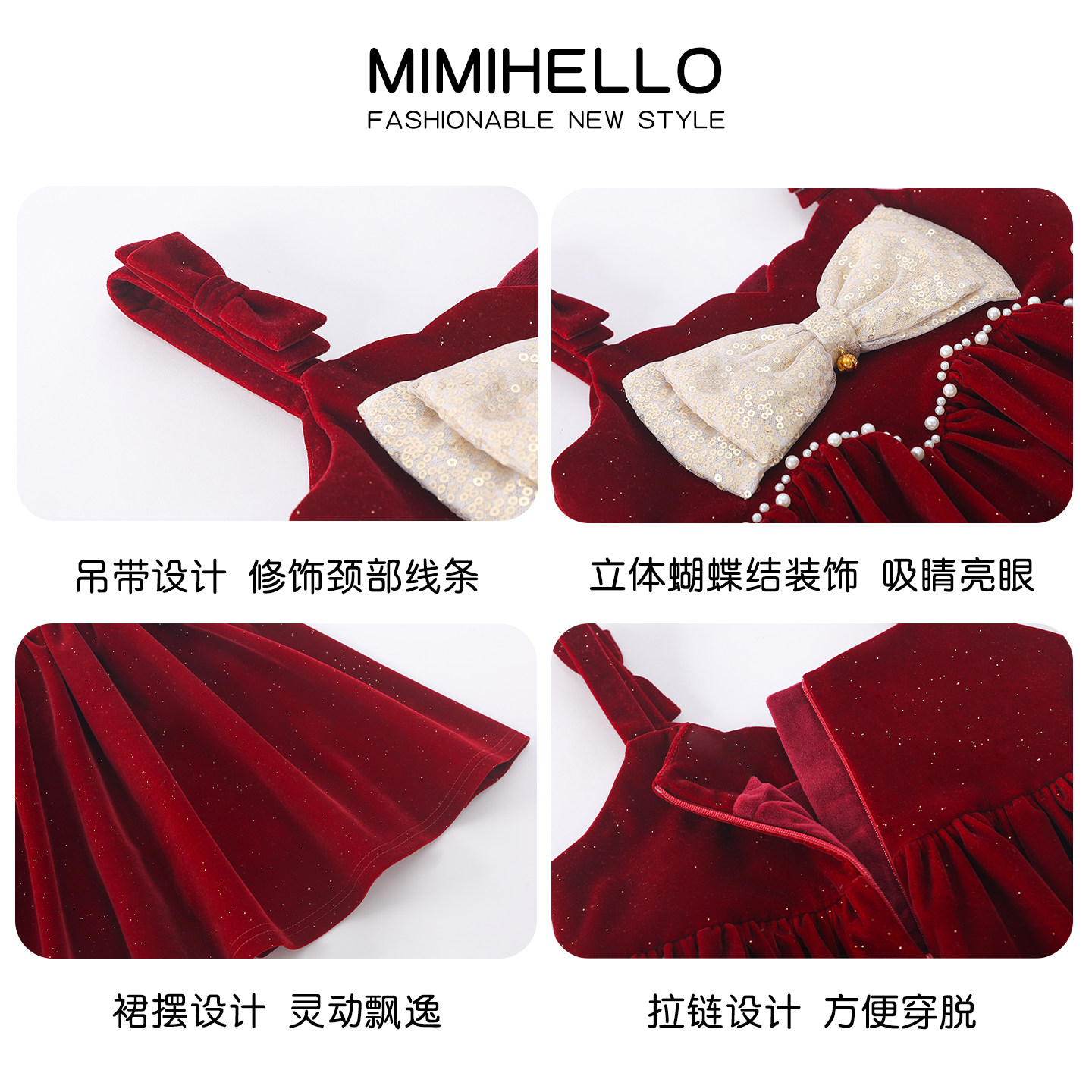 女童烫金蝴蝶结礼服丝绒连衣裙