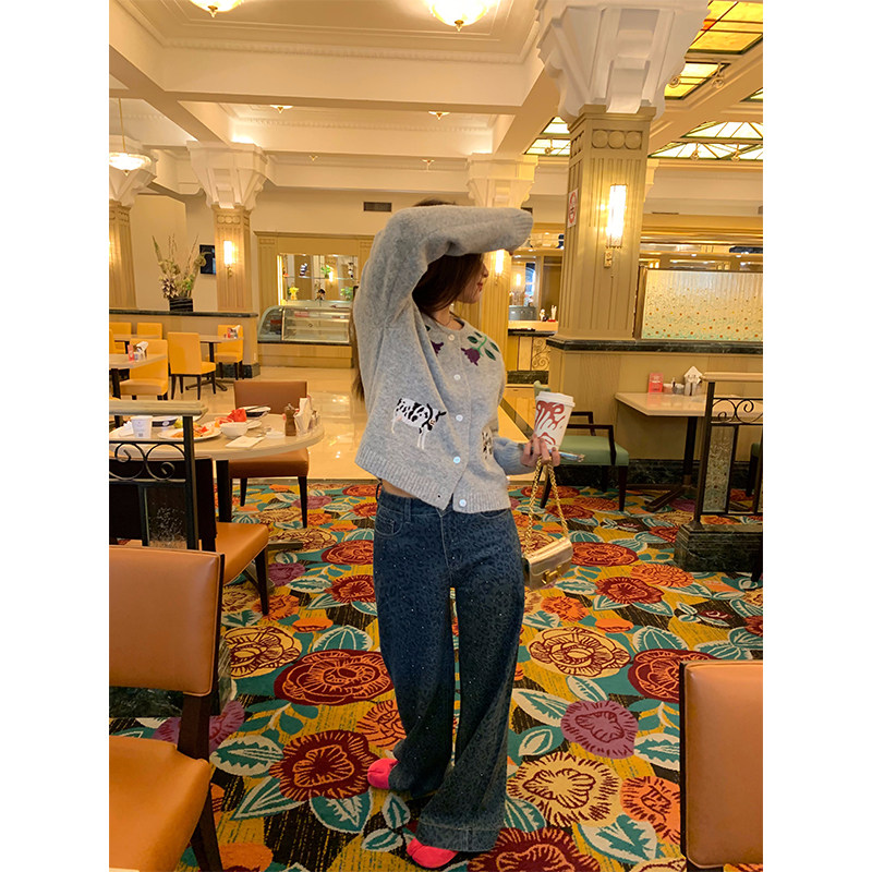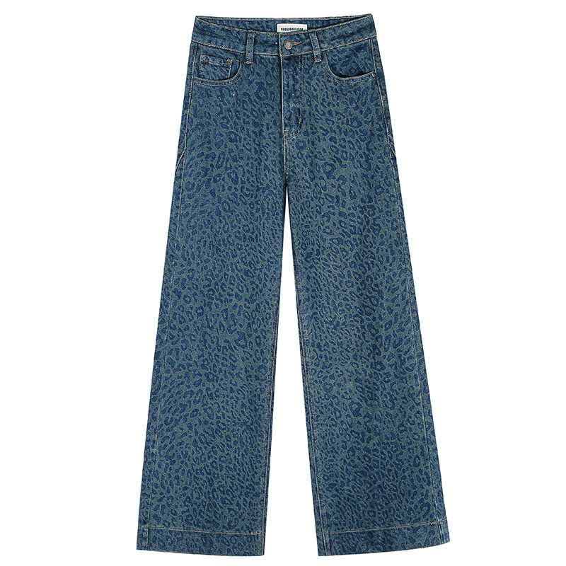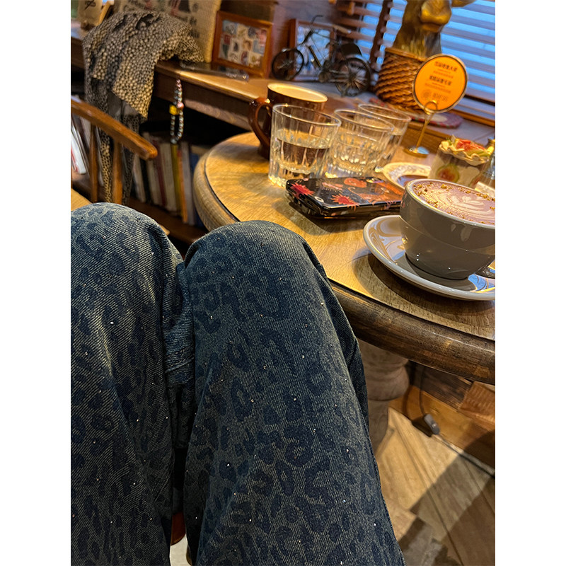 落落狷介 牛仔裤女秋冬今年流行的新款裤子印花宽松阔腿裤小个子