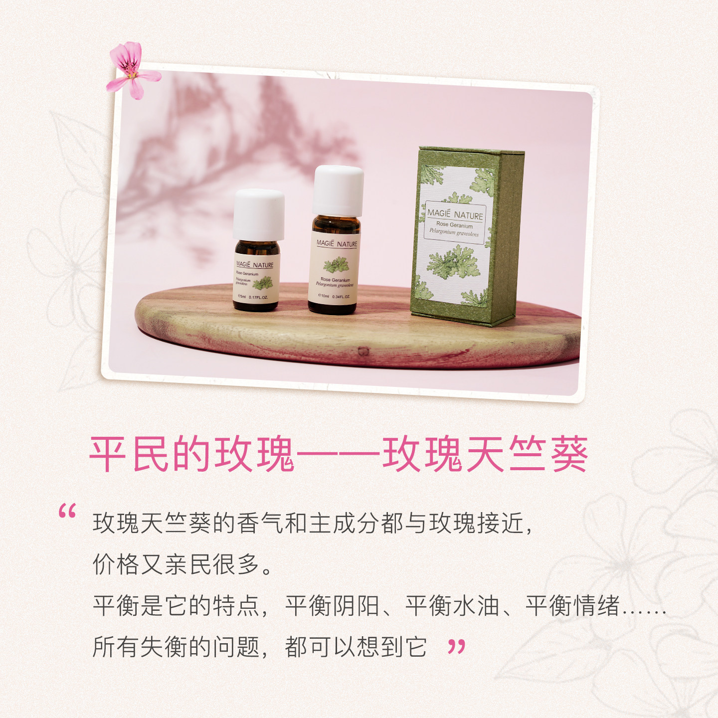 魔天然 玫瑰天竺葵精油单方 埃及进口 香薰 平衡水油和身心