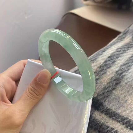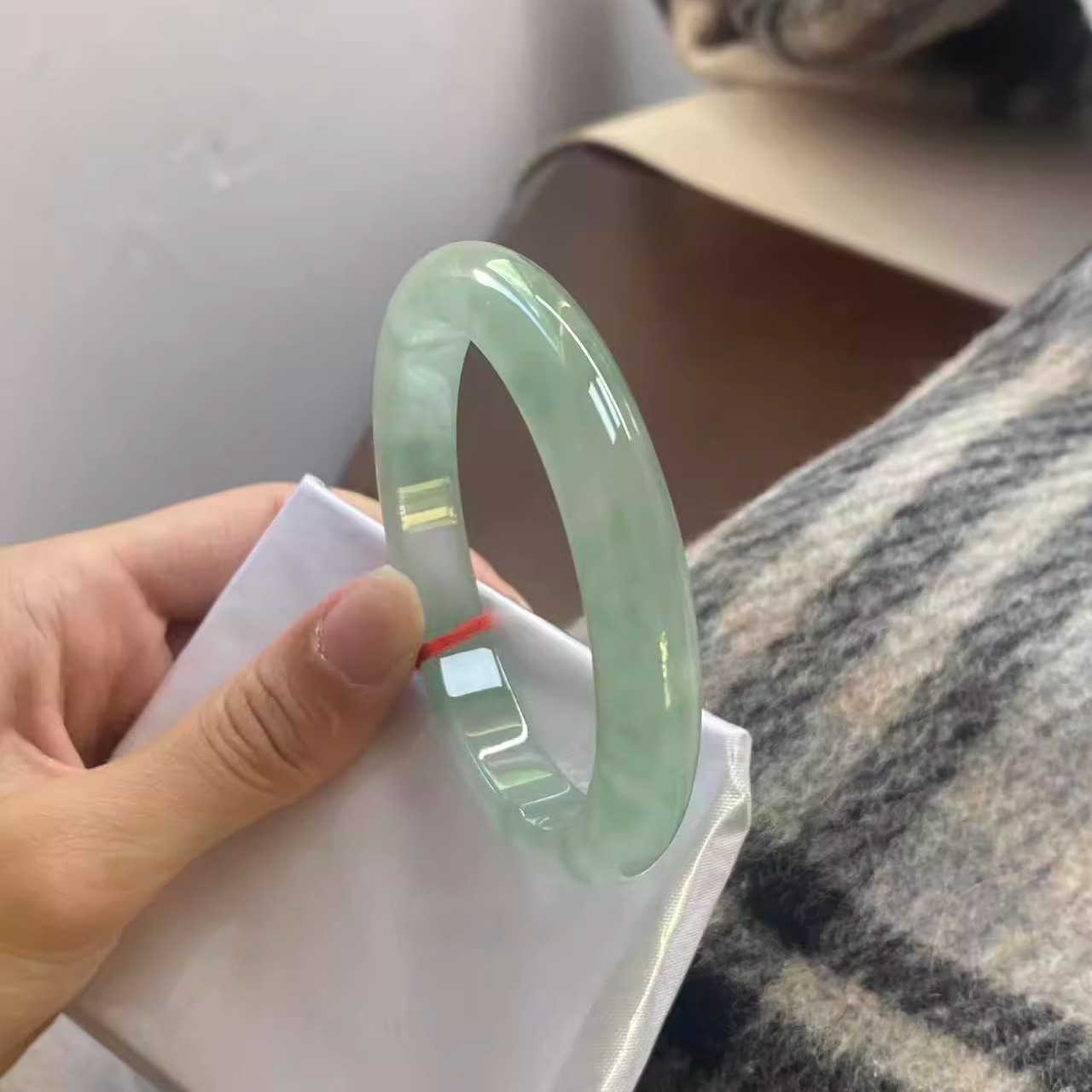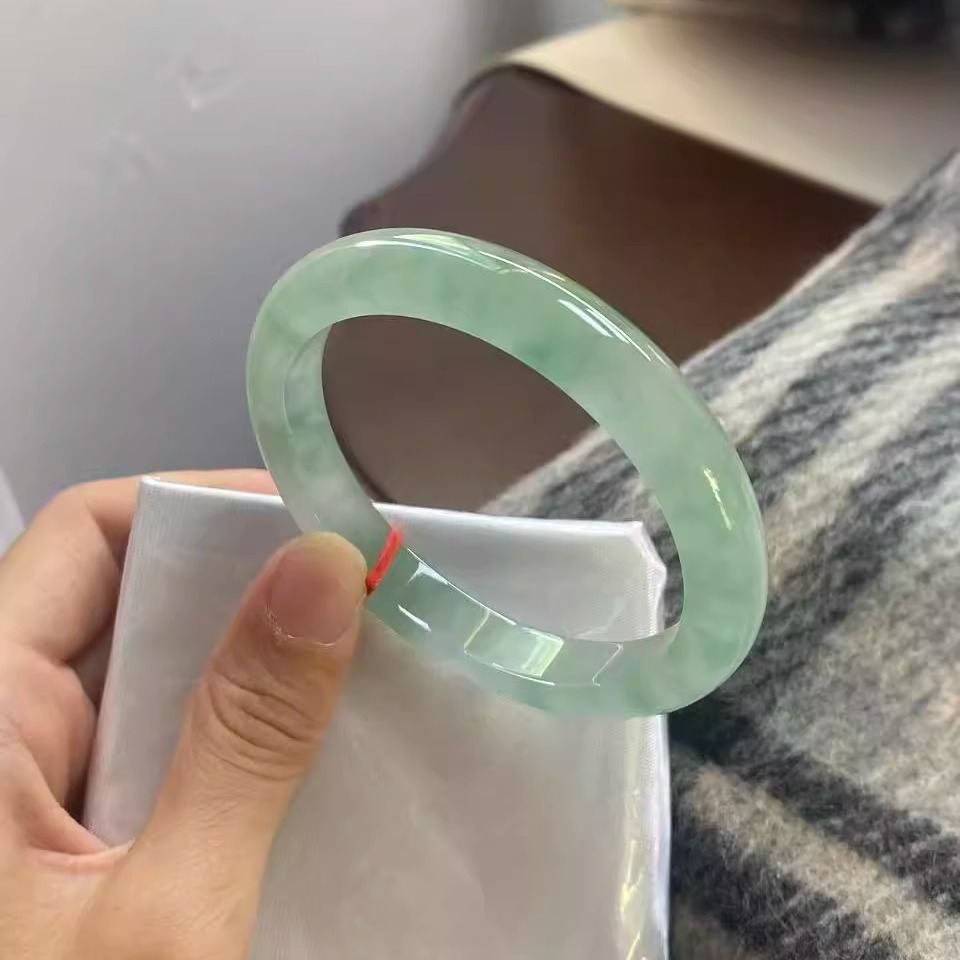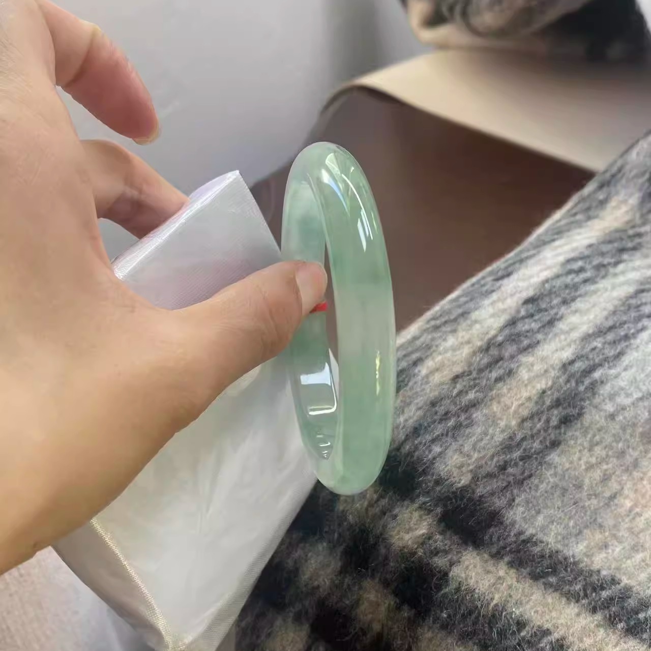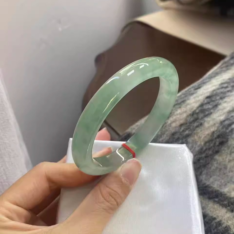 玉长情高端缅甸翡翠正品冰种油青飘花玉手镯子女款步离镯玉石处理