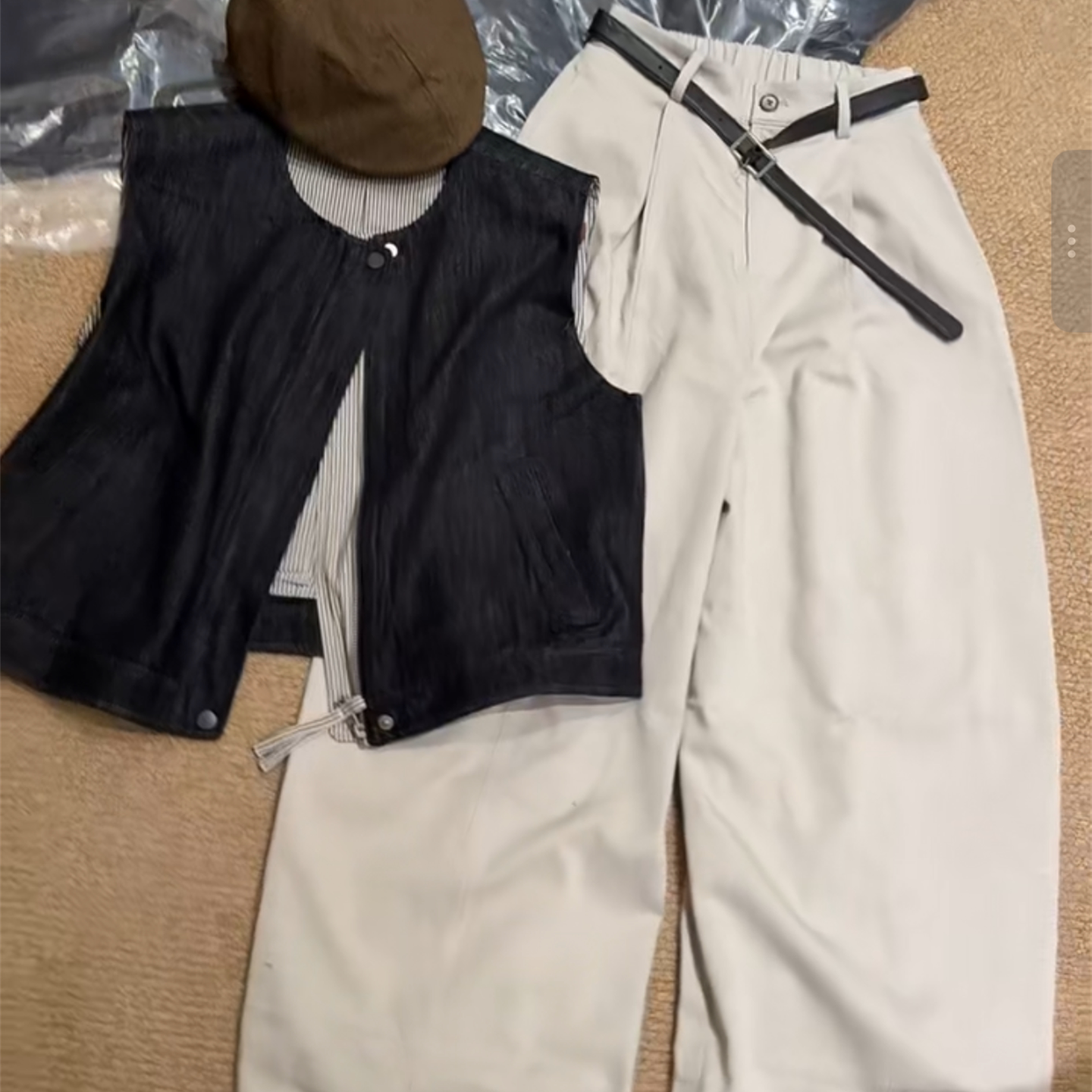 9751韩系 条纹内里 马甲女2025秋季新款时尚女装纯色牛仔马夹上衣