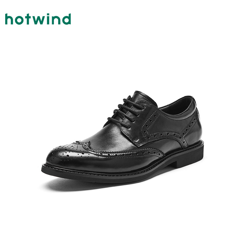 热风男鞋2025年秋季新款男士时尚单鞋低跟正装皮鞋雕花德比鞋婚鞋