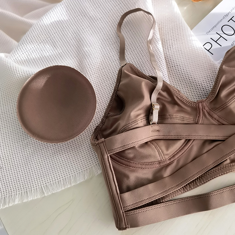 三角杯美背内衣露背文胸聚拢薄款夏季大胸显小胸无钢圈防下垂套装