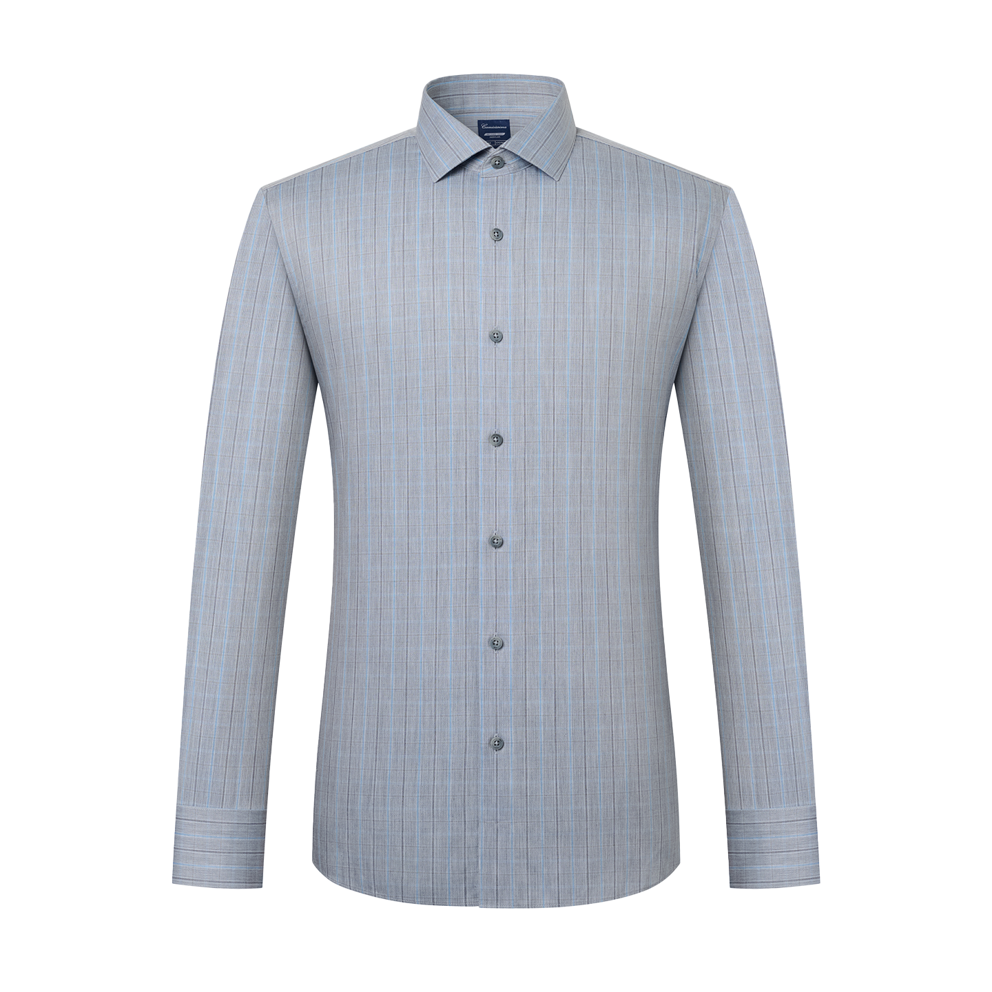 恺米切2025年秋商务休闲男士纯棉条纹免烫长袖衬衫