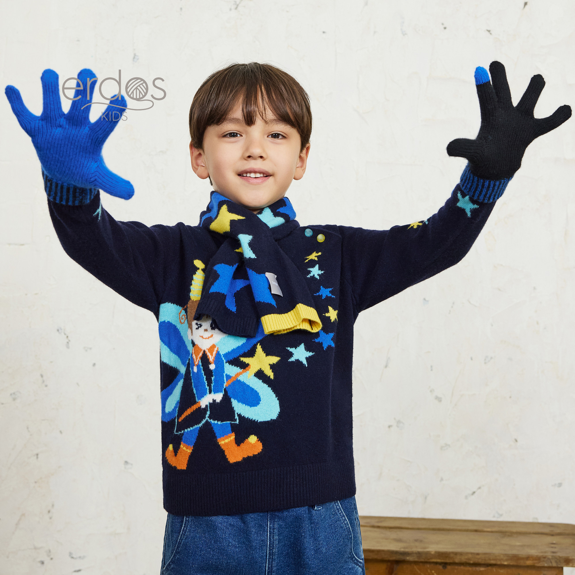 erdosKIDS 鄂尔多斯25秋冬新品童装男女童保暖纯羊绒帽子围巾手套