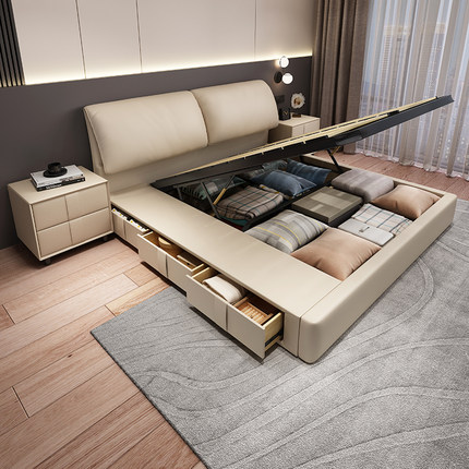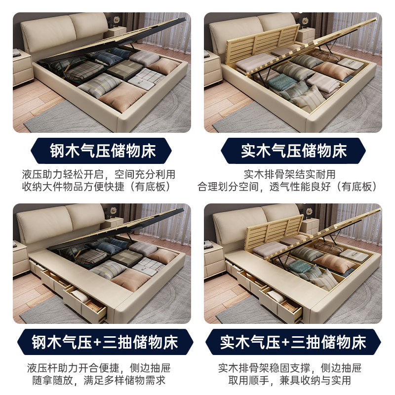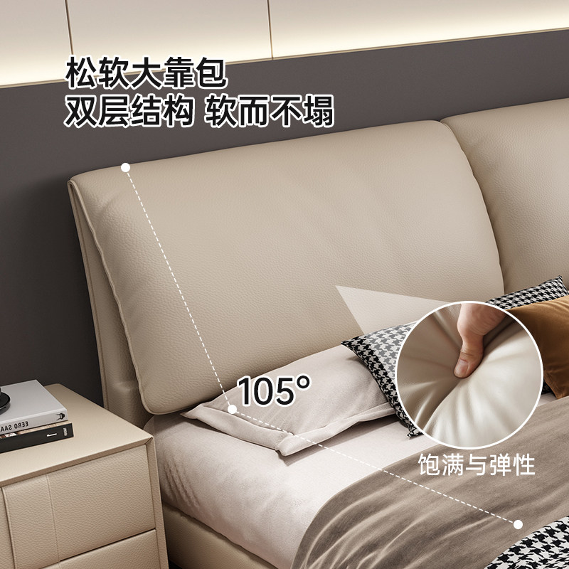 大象耳朵真皮床轻奢主卧室双人大床气压储物多功能实木软包婚床