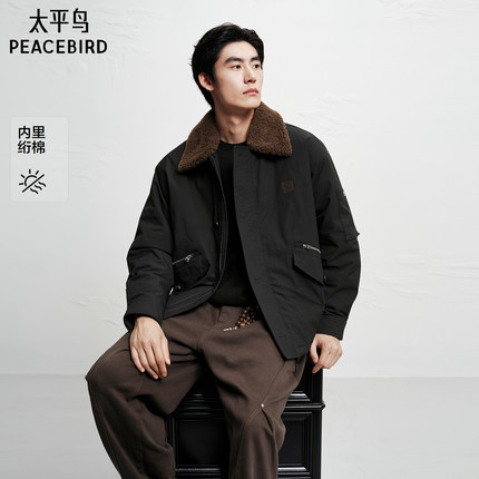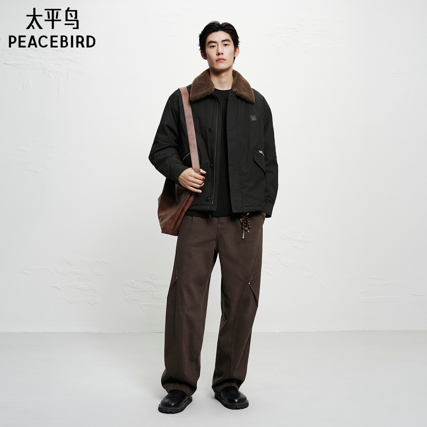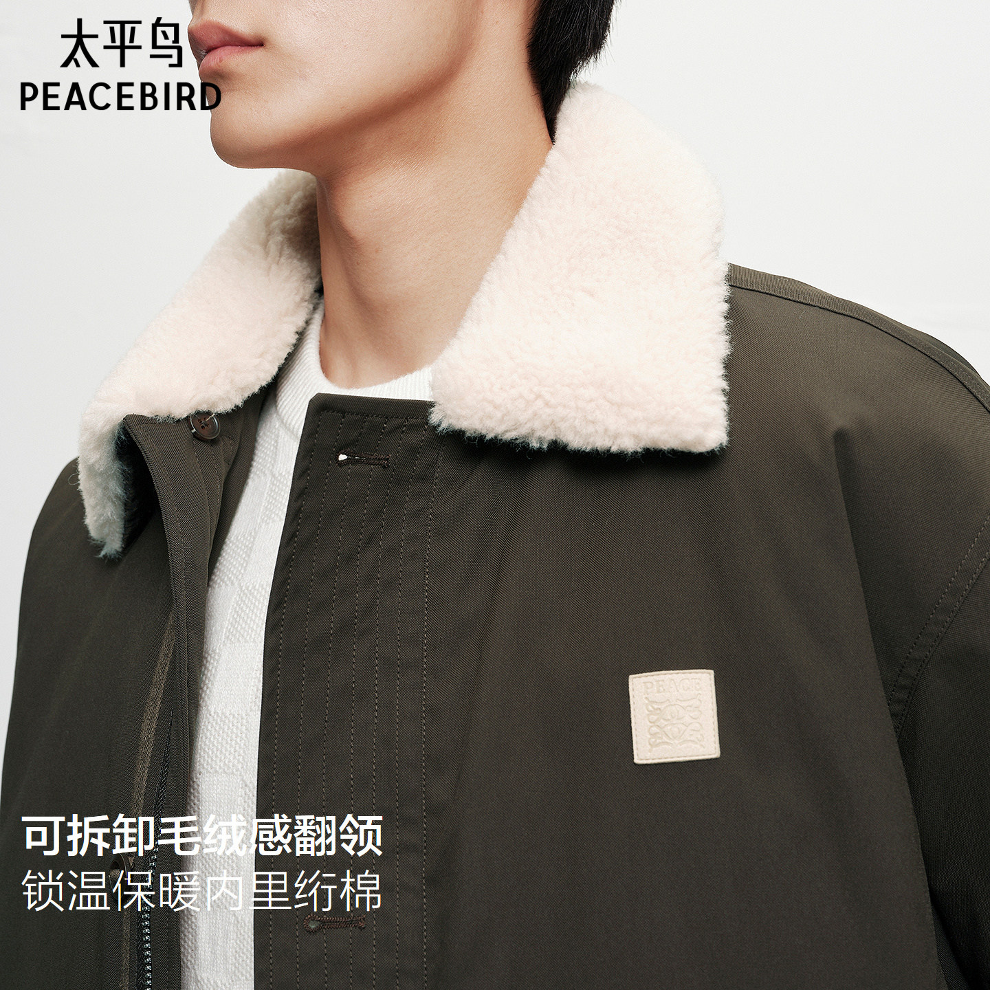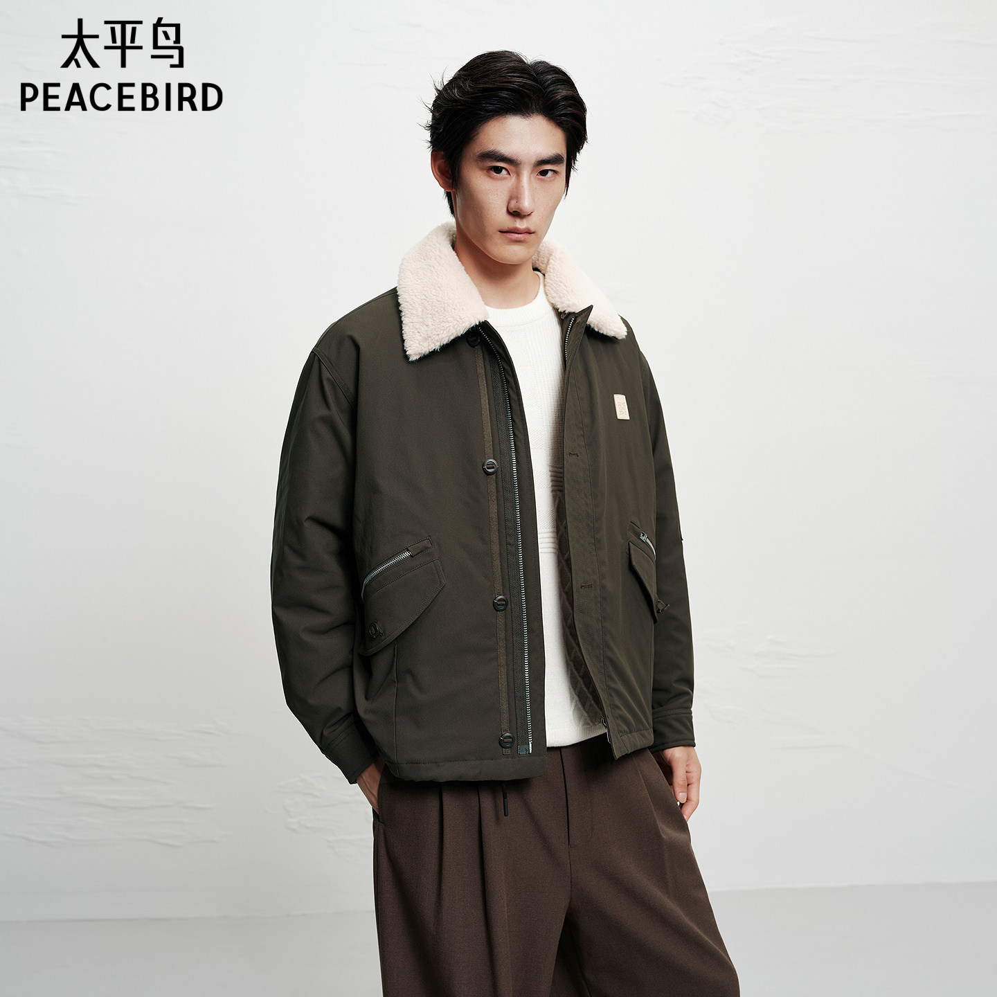 太平鸟男装巴恩风行政夹克新款毛领加厚宽松休闲外套潮流青年茄克