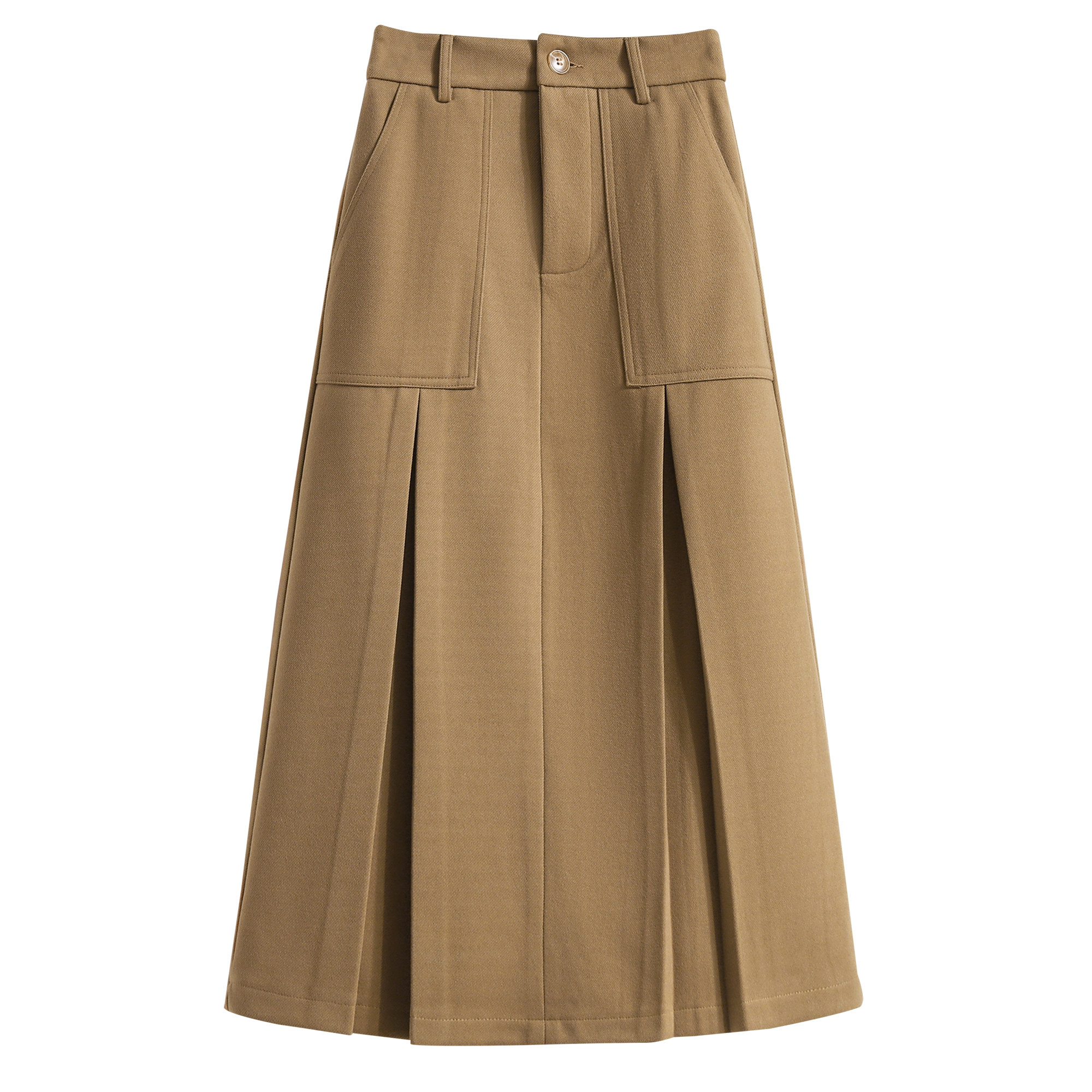 品牌折扣清仓毛呢西装半身裙女秋冬设计感小众中长款工装百褶裙潮