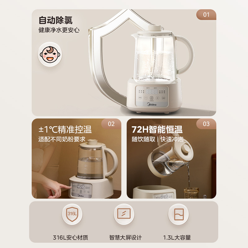 美的调奶器恒温水壶婴儿专用调奶器自动冲泡奶机养生壶玻璃烧水壶
