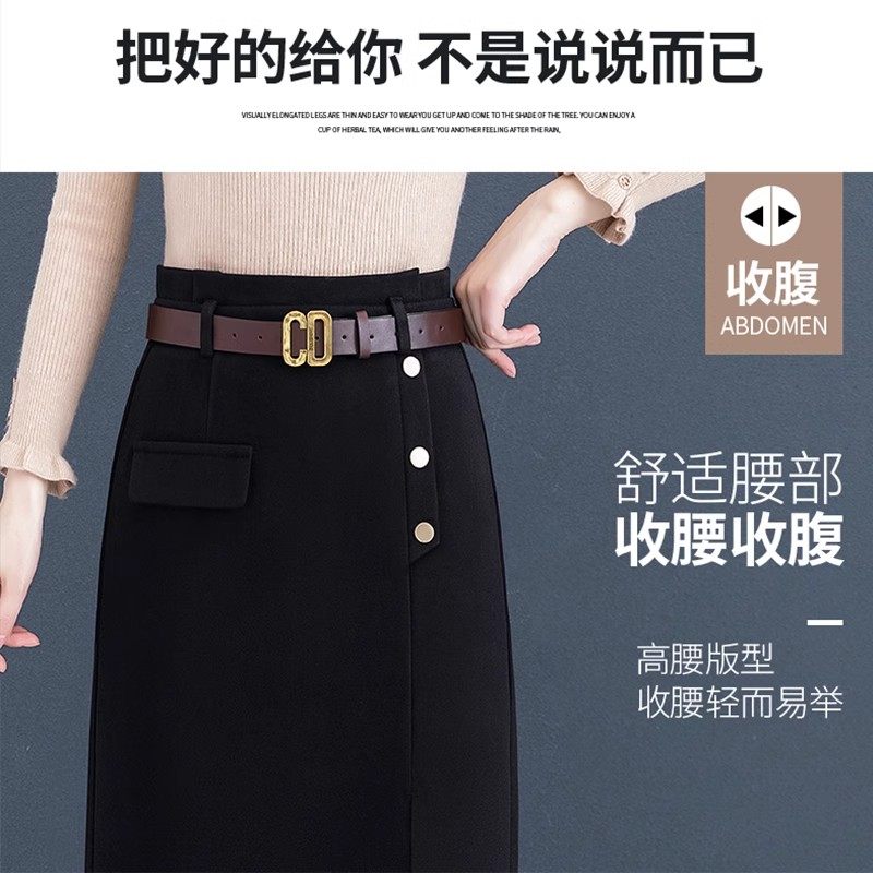 毛呢半身裙女2025新款秋冬季呢子高腰百搭中长款时尚包臀a字裙子
