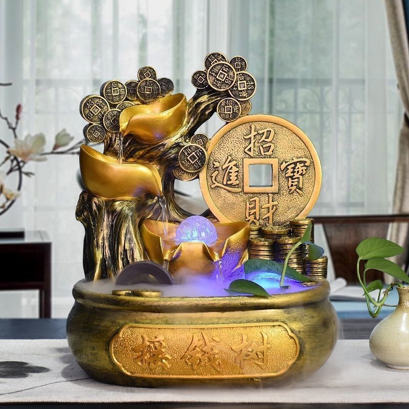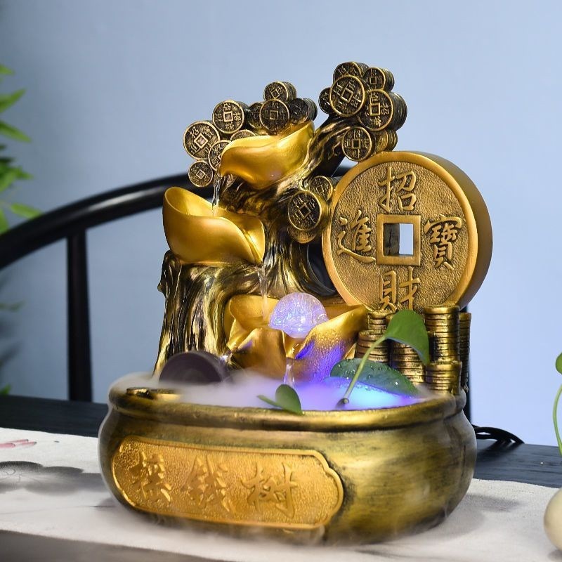摇钱树招财桌面摆件客厅卧室加湿循环水聚宝盆开业转运球乔迁礼品