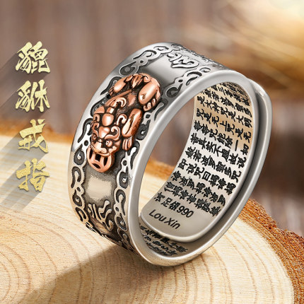 99足银貔貅心经戒指男士纯银单身国潮复古个性女潮男款情侣飞龙戒