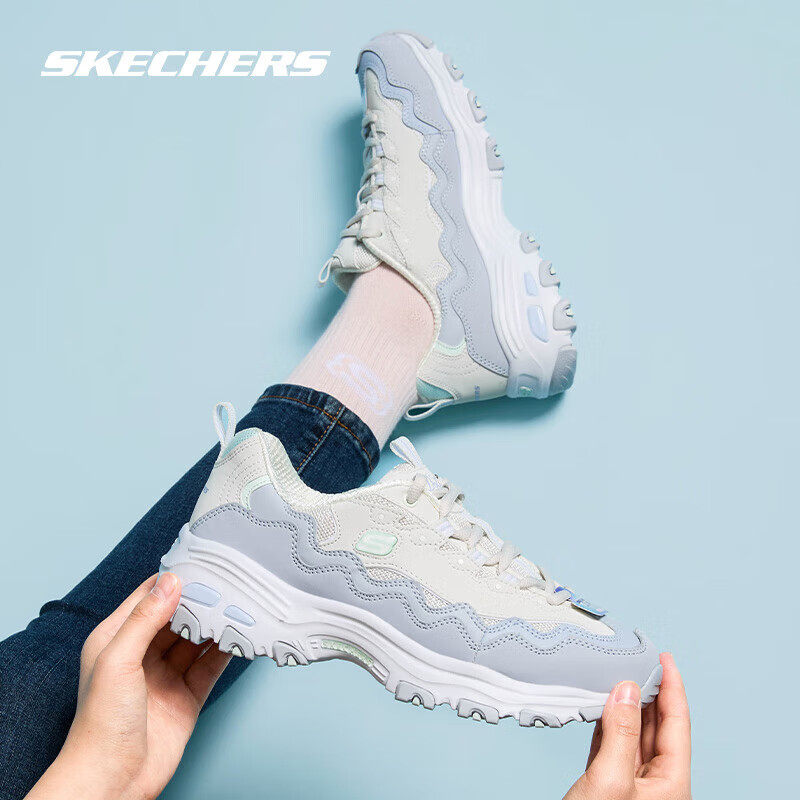 斯凯奇女鞋厚底老爹鞋贝壳波浪拼接熊猫鞋休闲鞋经典时尚轻便跑鞋