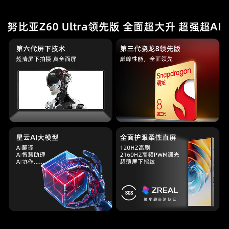 努比亚Z60Ultra领先版AI手机骁龙8Gen3领先版IP68防水防尘6000mAh大电池长续航z60ultra