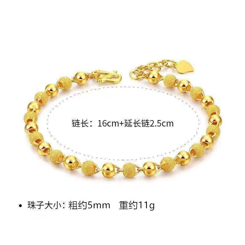 一光一砂18K黄金色手链男女款圆珠光珠磨砂珠古法珠本命年送女友
