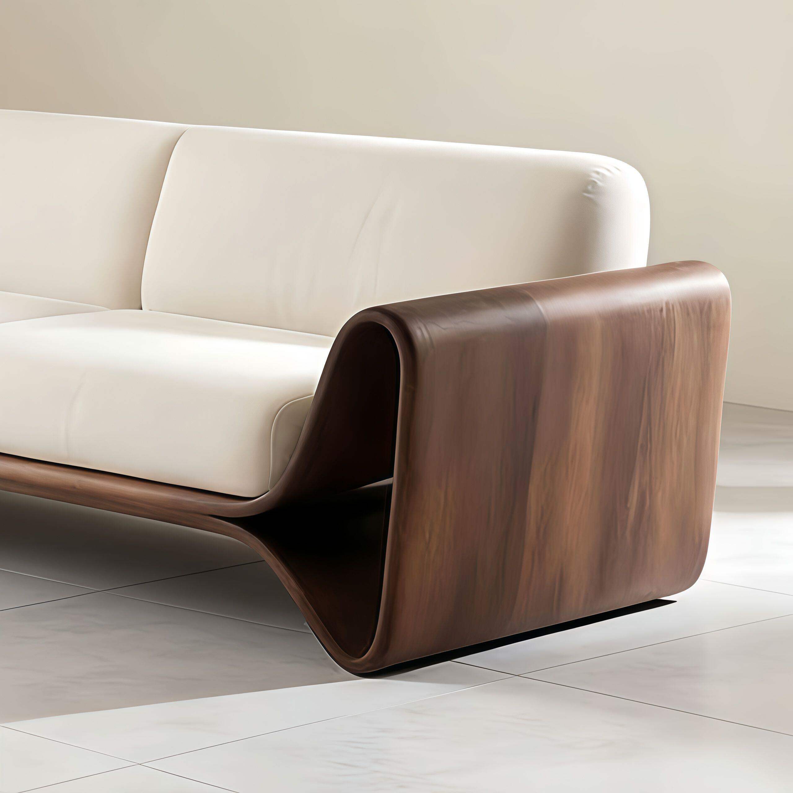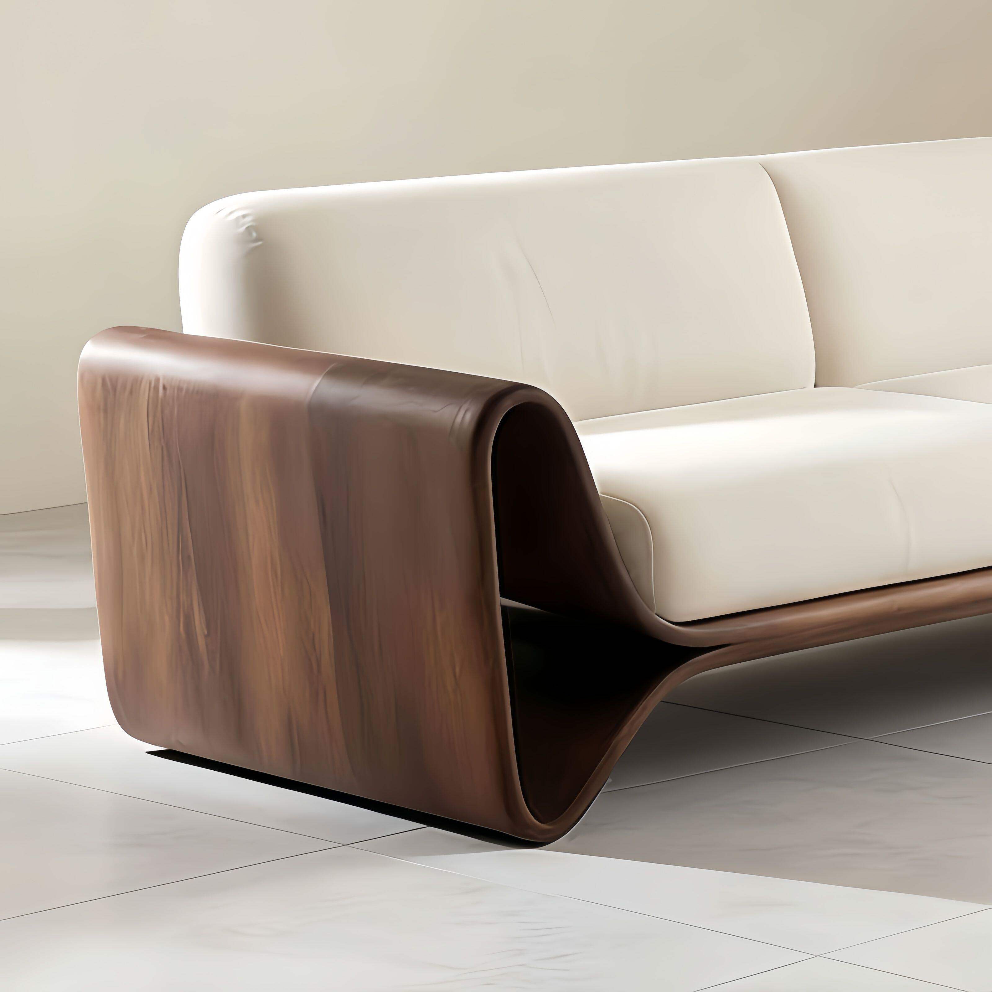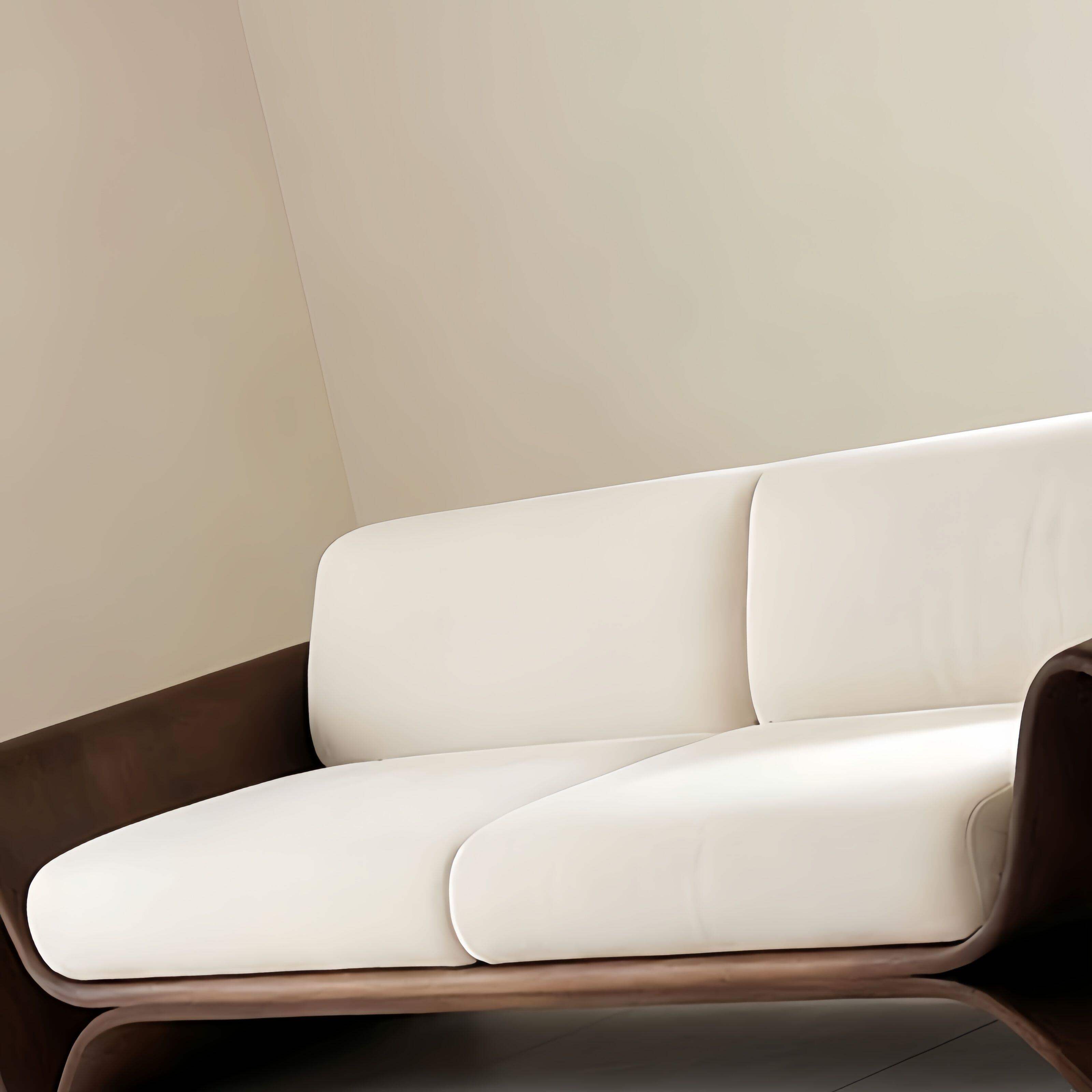 新中式胡桃木实木沙发新款现代简约客厅直排三人位皮艺沙发小户型