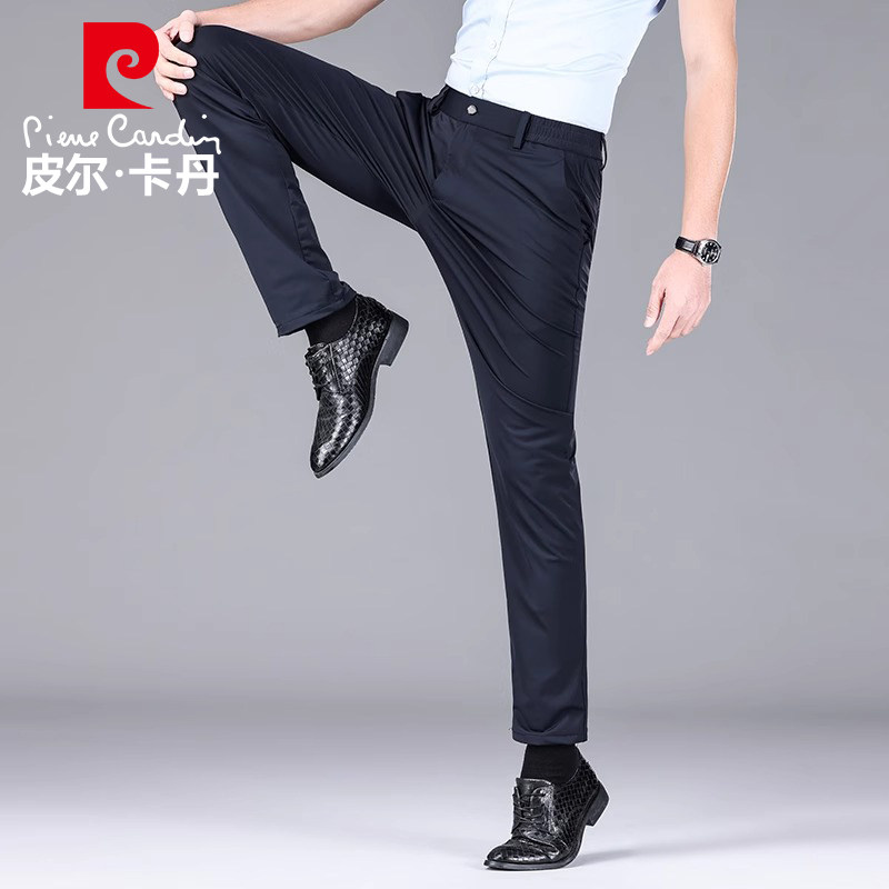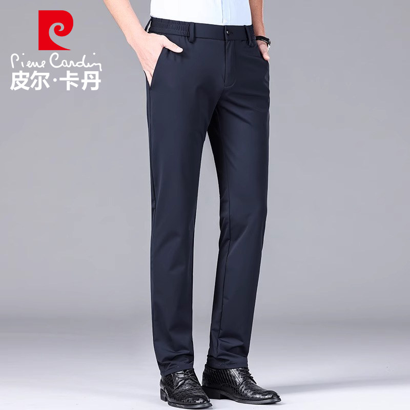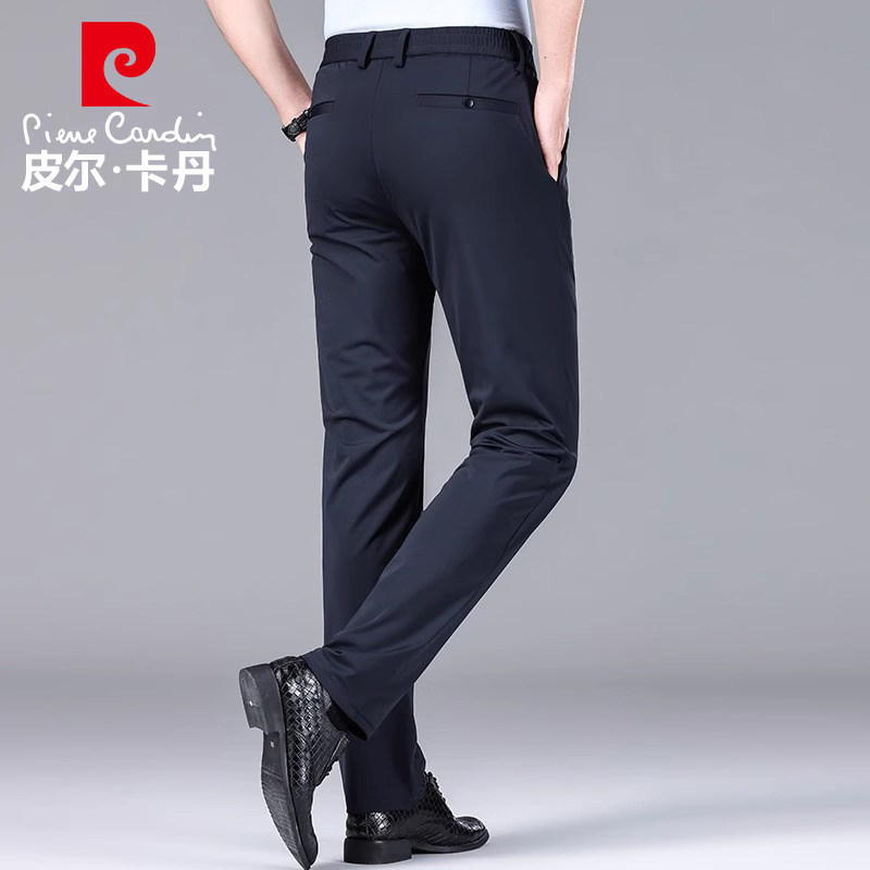皮尔卡丹弹力厚款休闲裤男秋冬新款松紧腰加绒直筒宽松商务西裤子