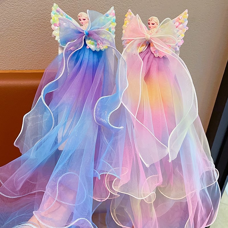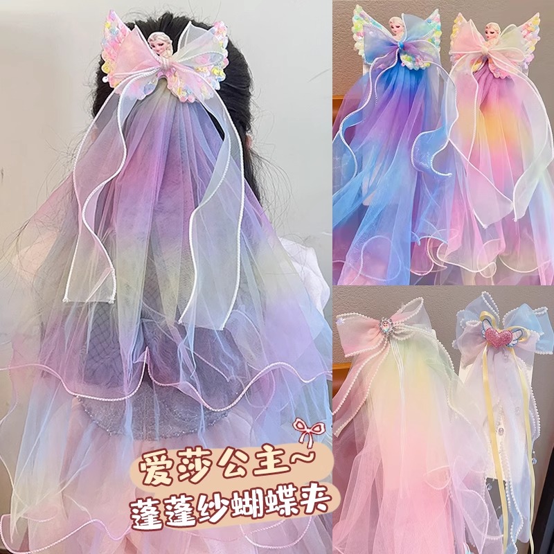 女童发夹2025年新款公主裙头纱儿童超仙蝴蝶结发饰小女孩洋气发卡