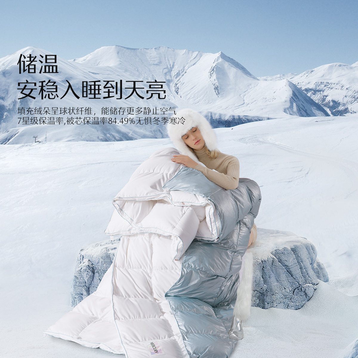 水星家纺松花江95白鹅绒被芯星系随心暖可调节蓄热抗菌鹅绒冬被
