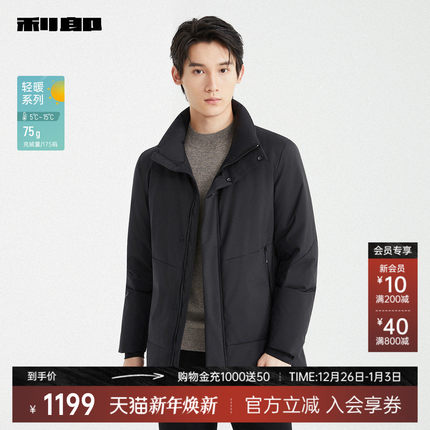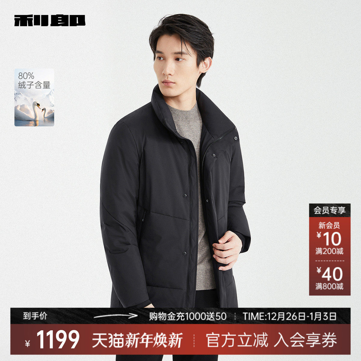 【白鹅绒】利郎官方 羽绒服男士立领中长款2025冬季薄款保暖外套