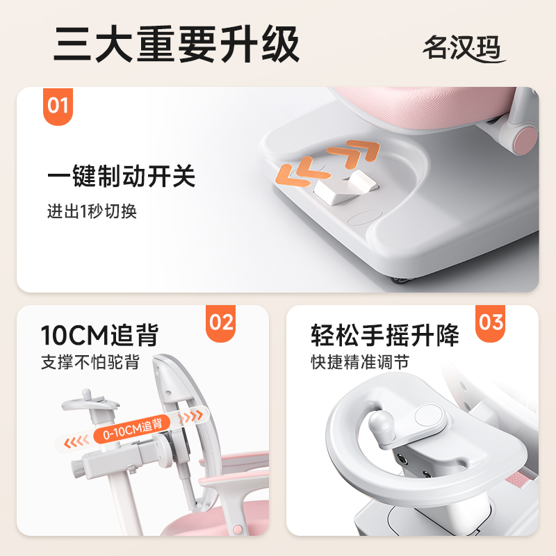 名汉玛儿童学习椅升降小学生家用写字椅矫正坐姿靠背座椅书桌椅子