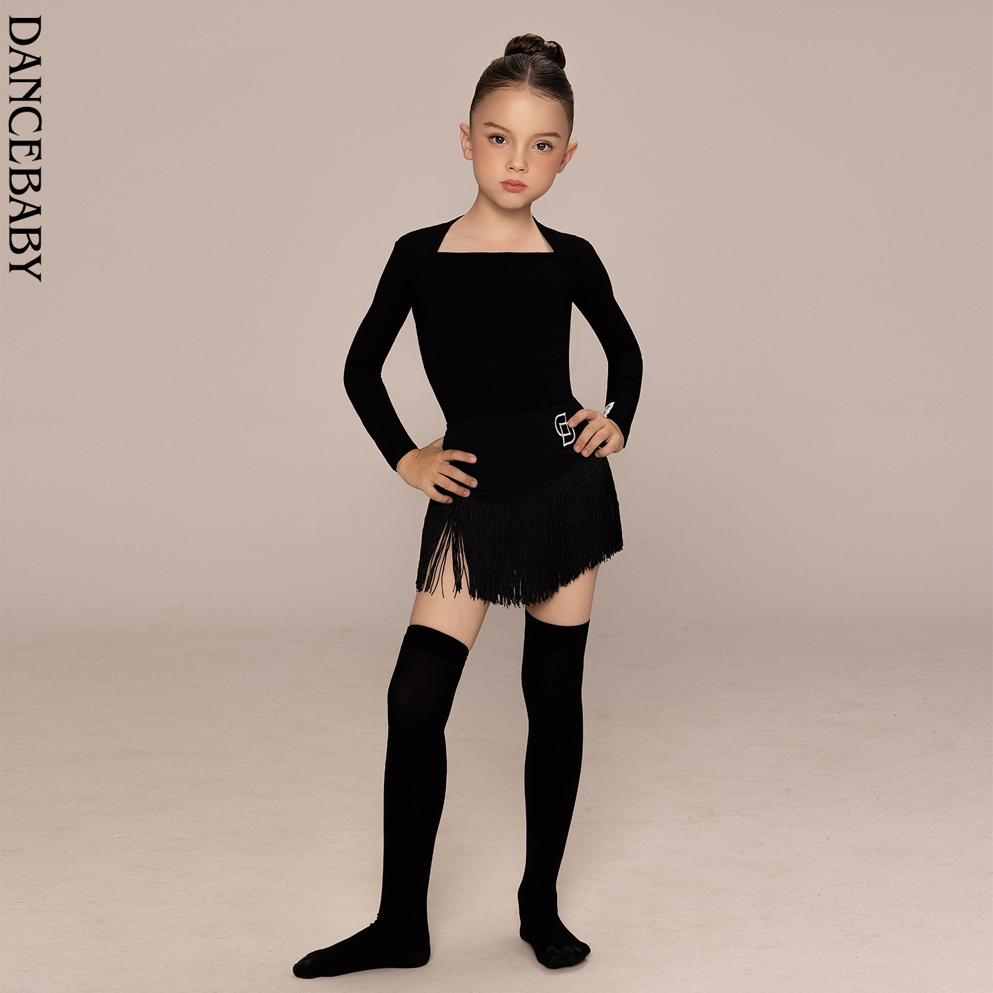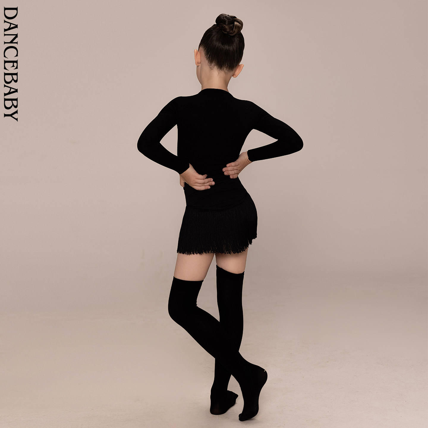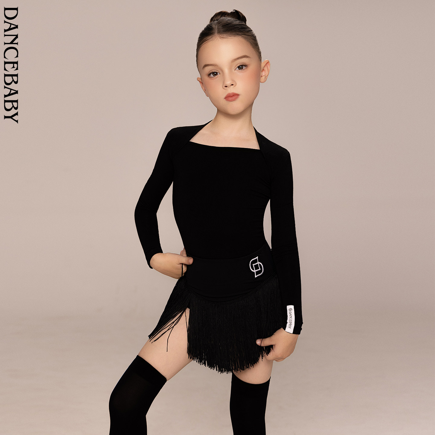 dancebaby拉丁舞练功服女儿童秋冬跳舞蹈上衣长袖专业上衣DAS224