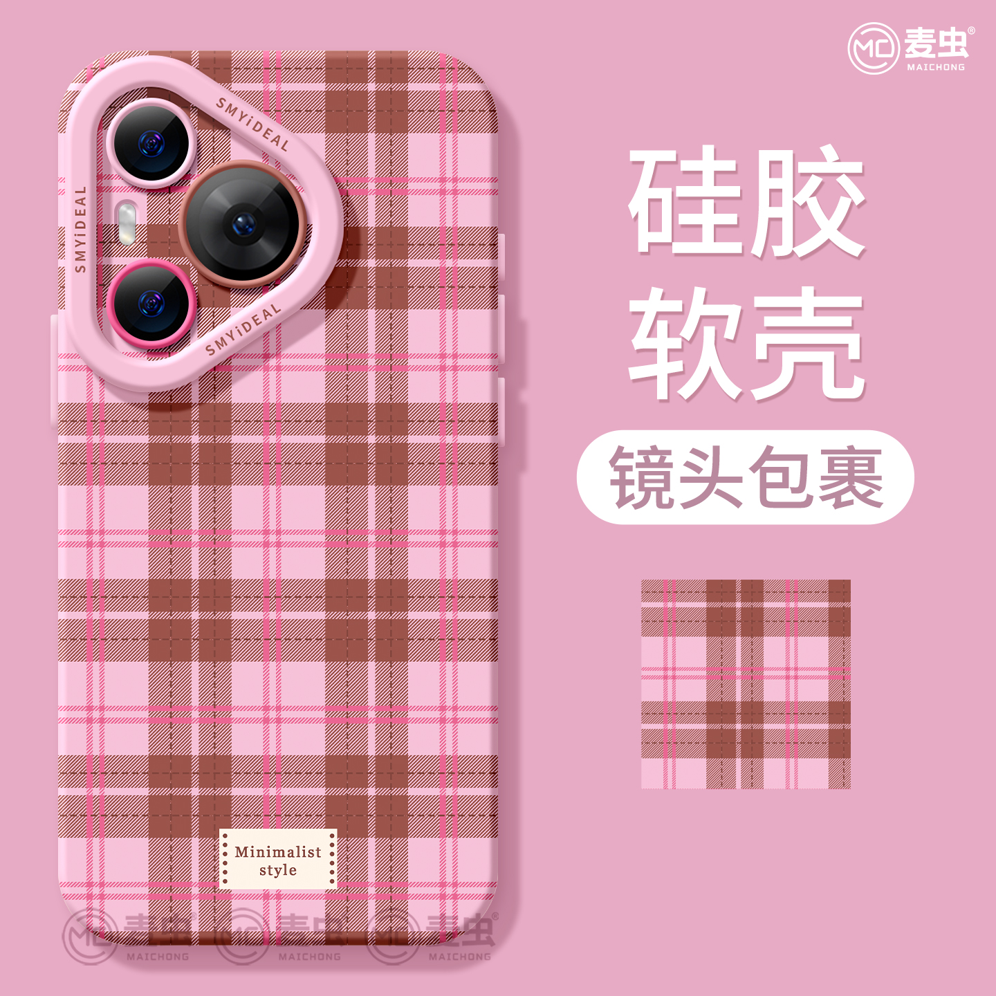 适用华为Pura80手机壳女款p70pro保护套新款ultra硅胶防摔50pro全包p40高级60pro+好看p80简约格子art软外壳